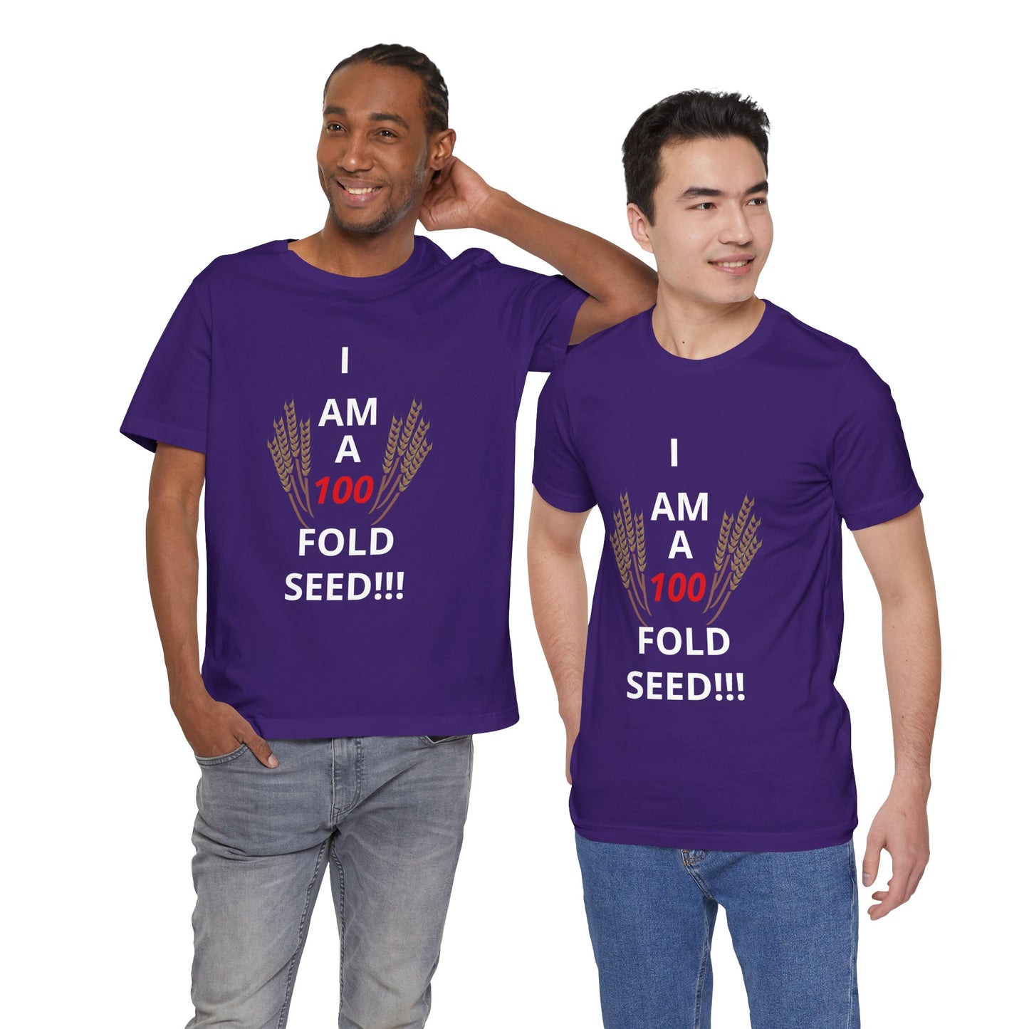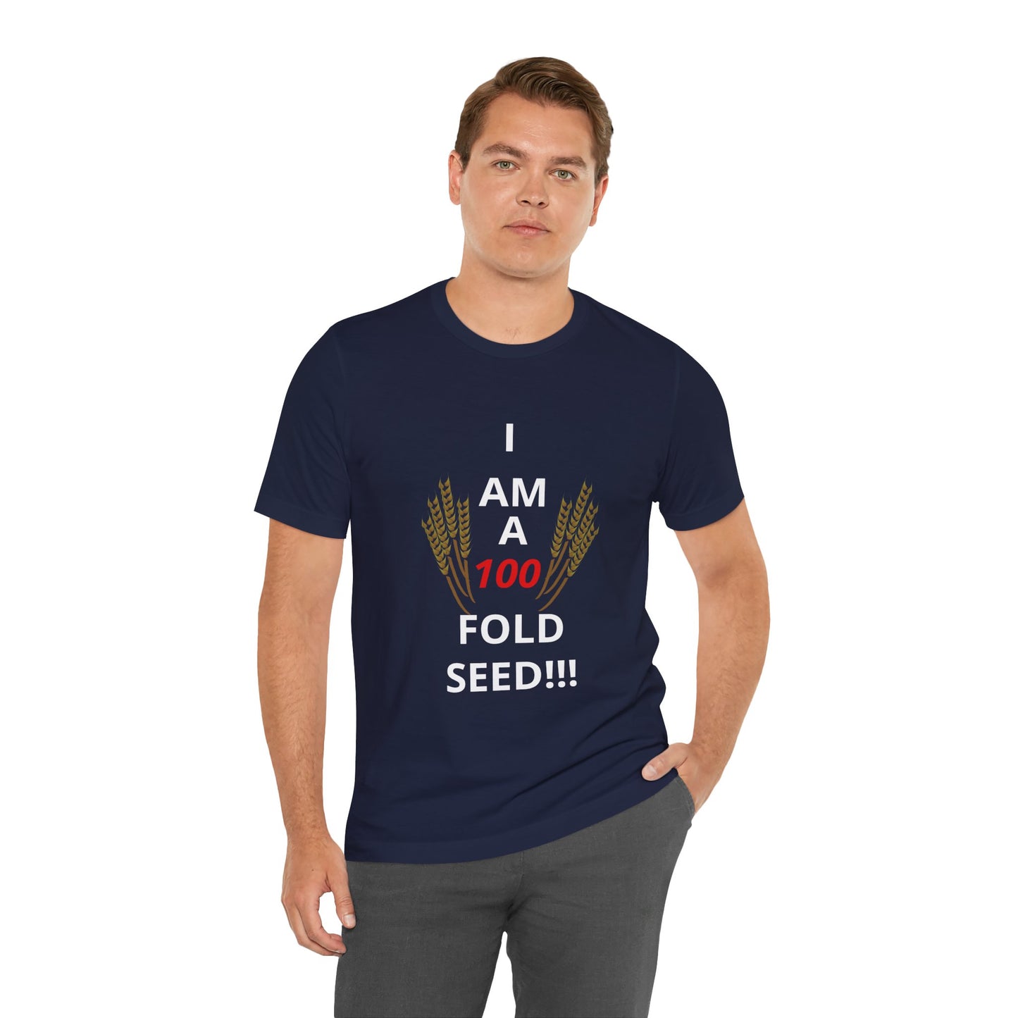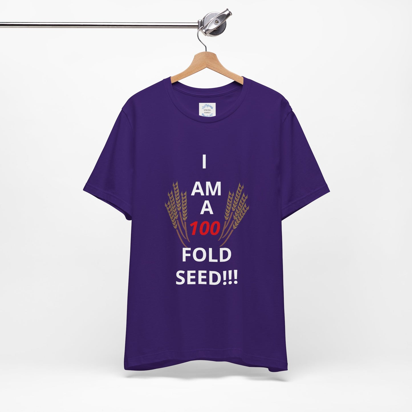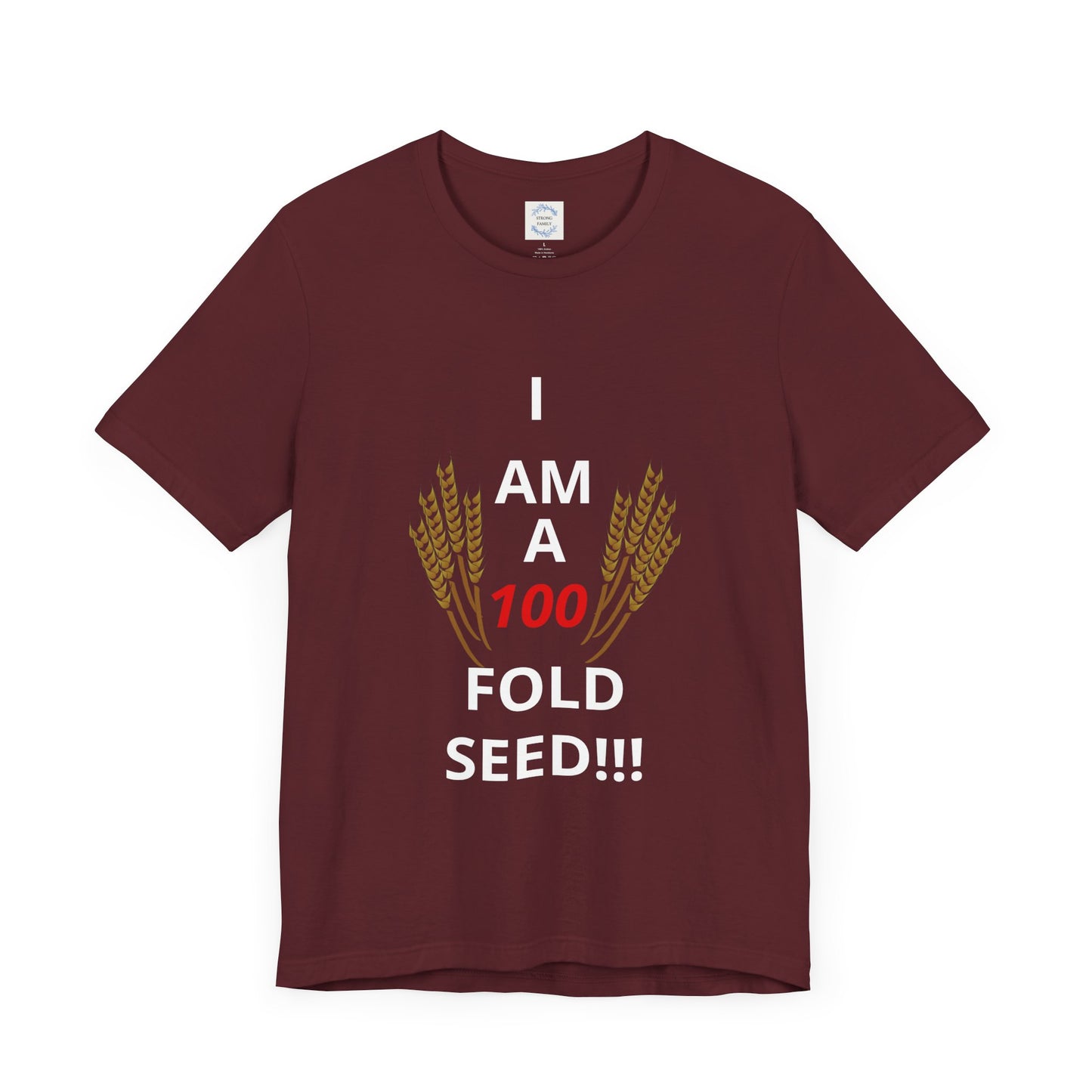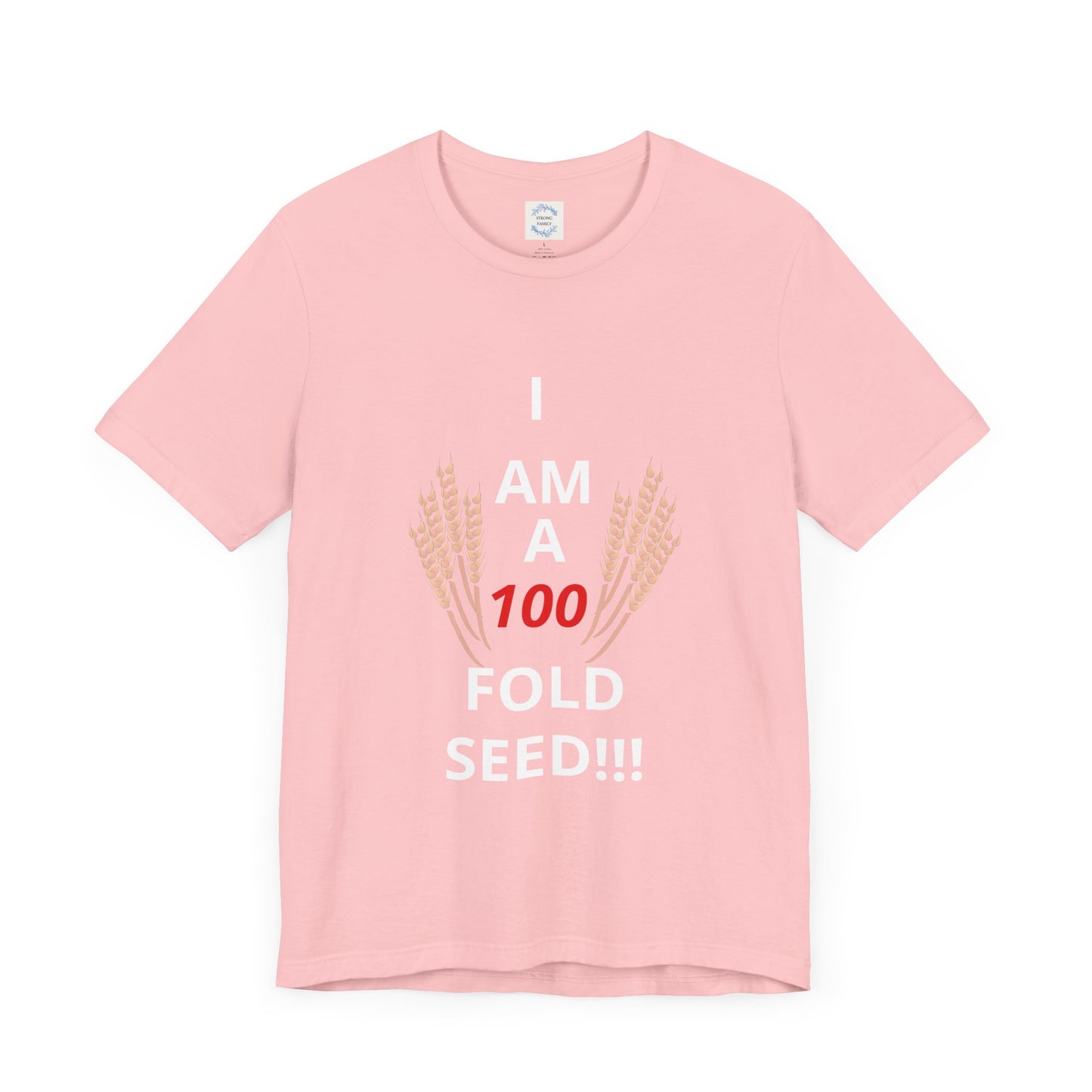 The 100 FOLD SEED unisex jersey short sleeve t-shirt brought to you by Strong Family delivers a POWERFUL message of how God desires your total life increase (3 John 1:2)! It is made with soft cotton and quality print. It fits like a well-loved favorite, perfect for both active and leisure wear. The retail fit and crew neckline add a neat, classic style that's great for casual and semi-formal settings. Ideal for those looking for a comfortable and versatile t-shirt to wear on various occasions.