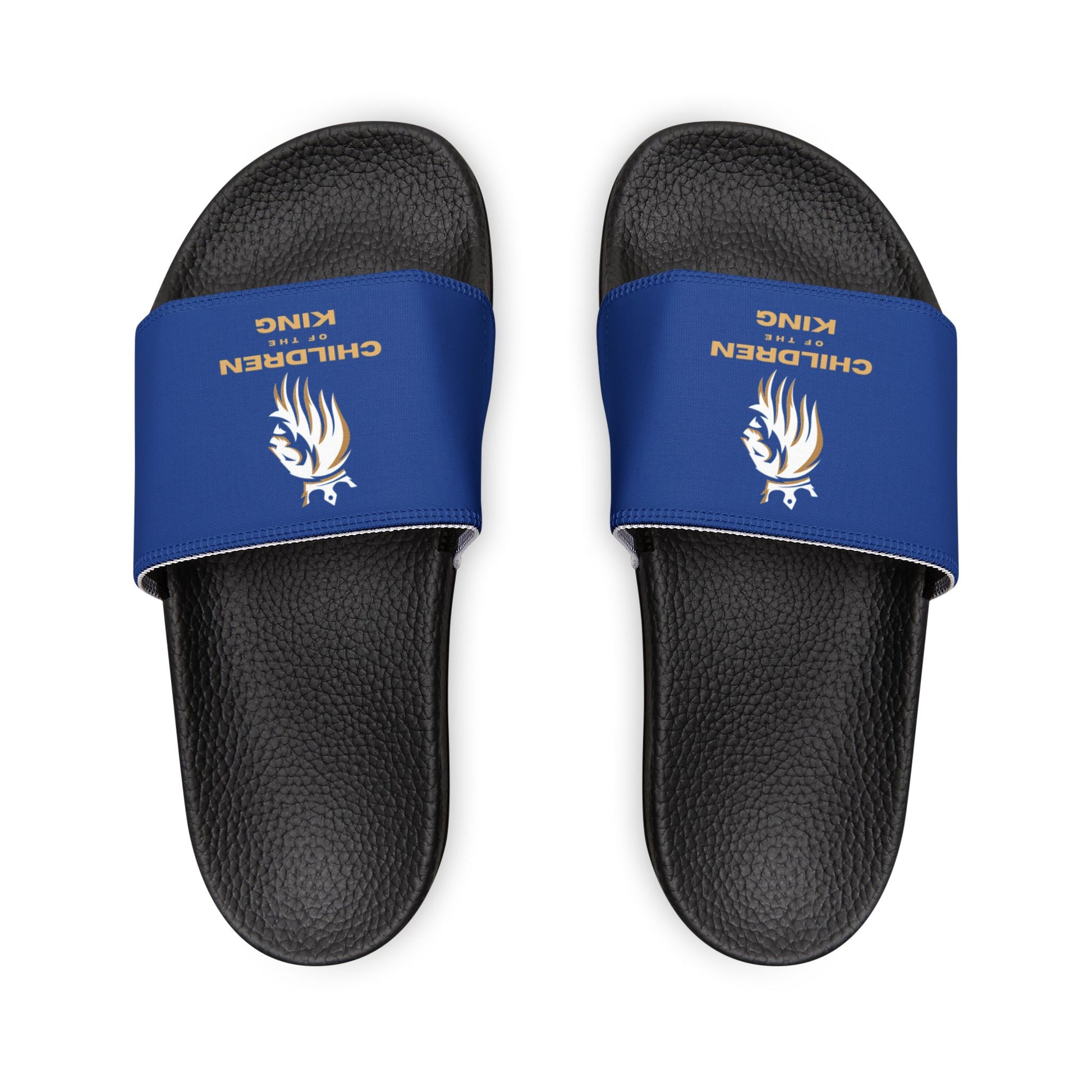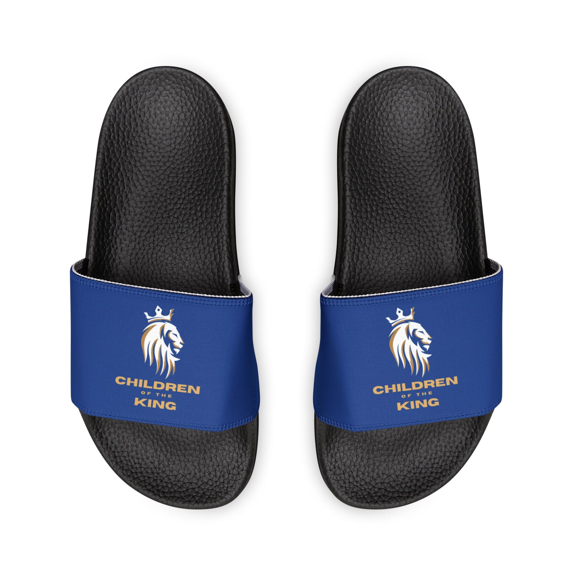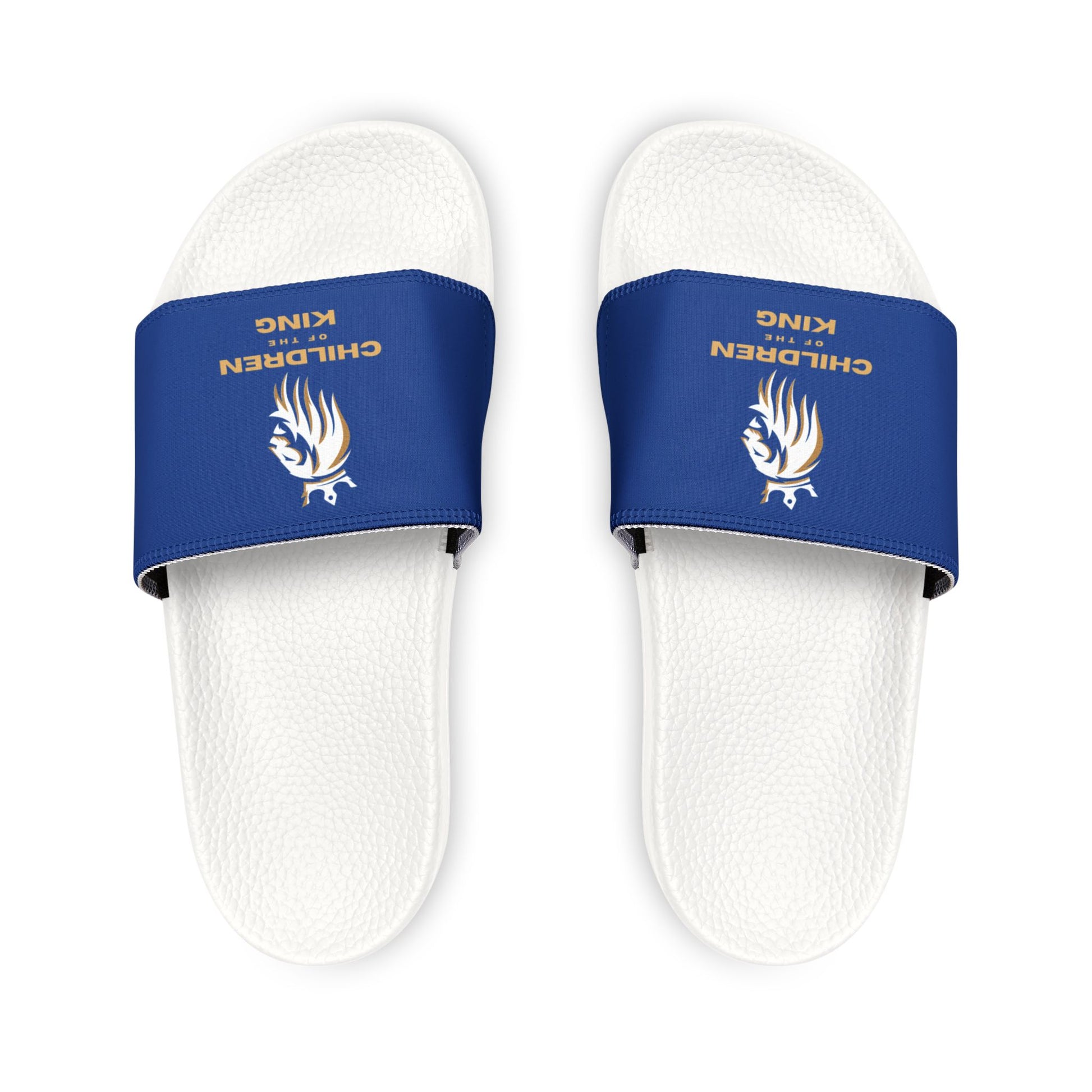 "Children of the King" WHITE Lion - DARK BLUE Youth Slide Sandals