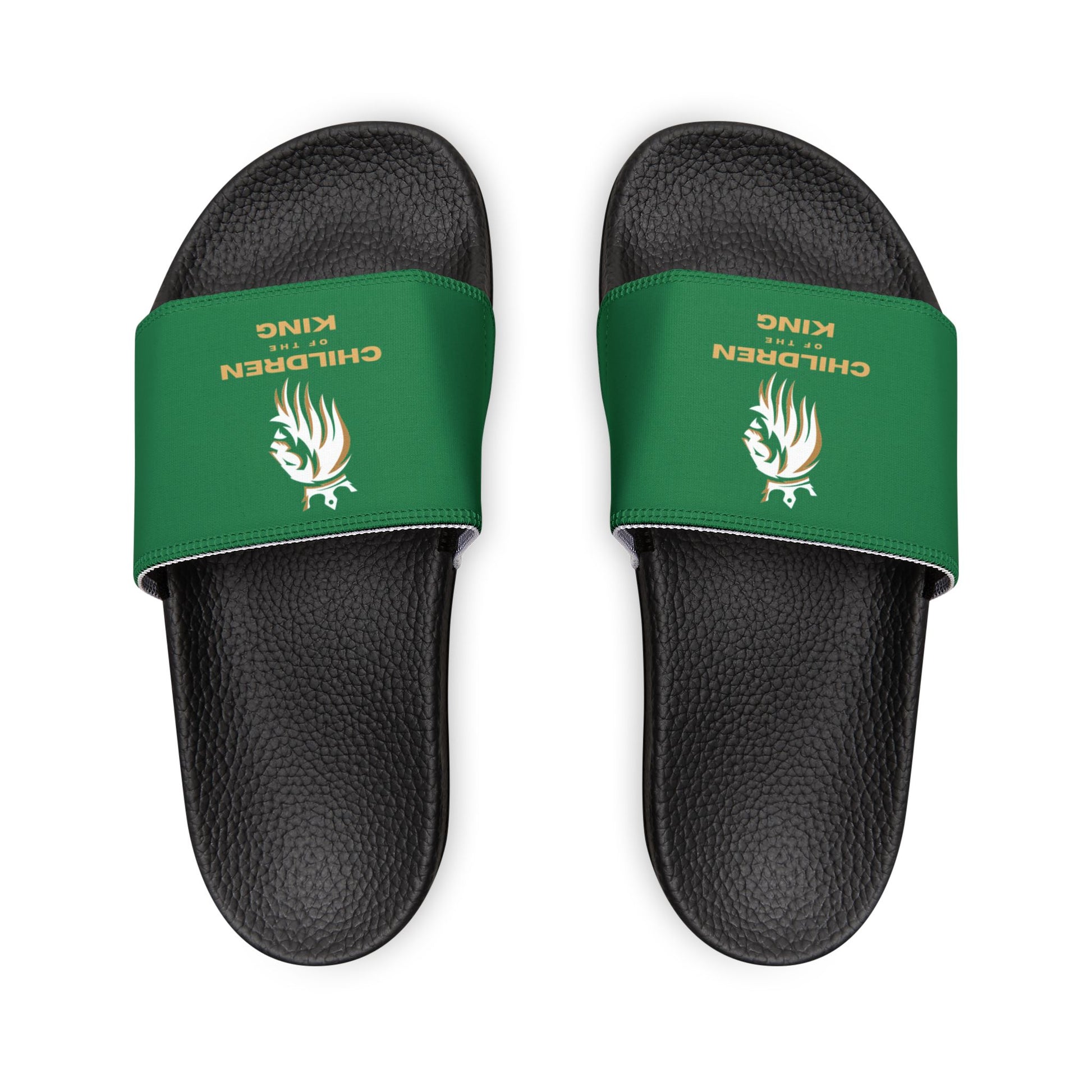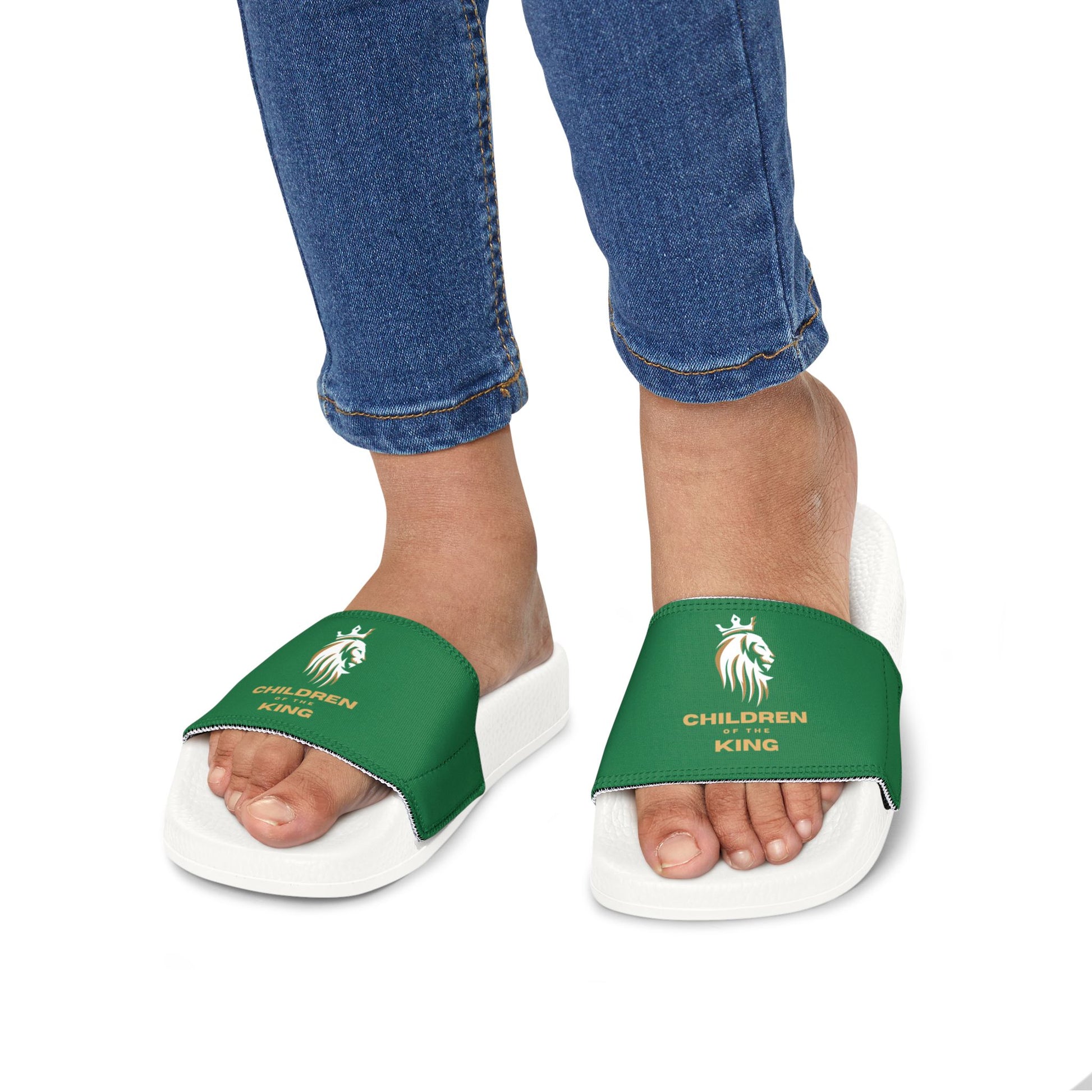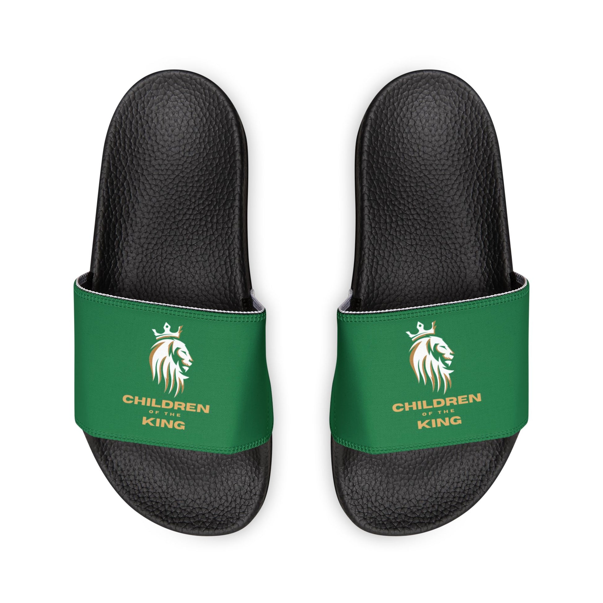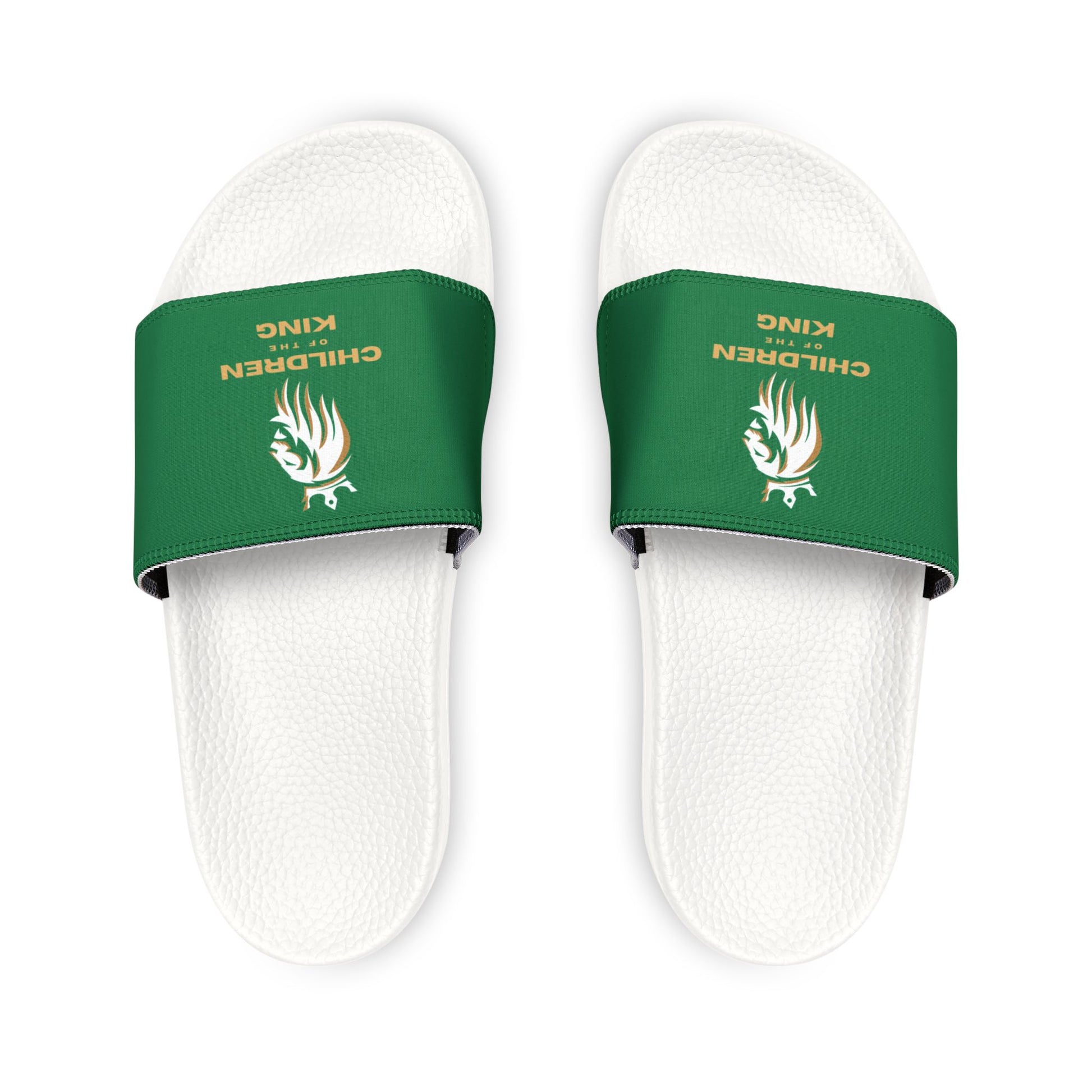 "Children of the King" WHITE Lion - DARK GREEN Youth Slide Sandals