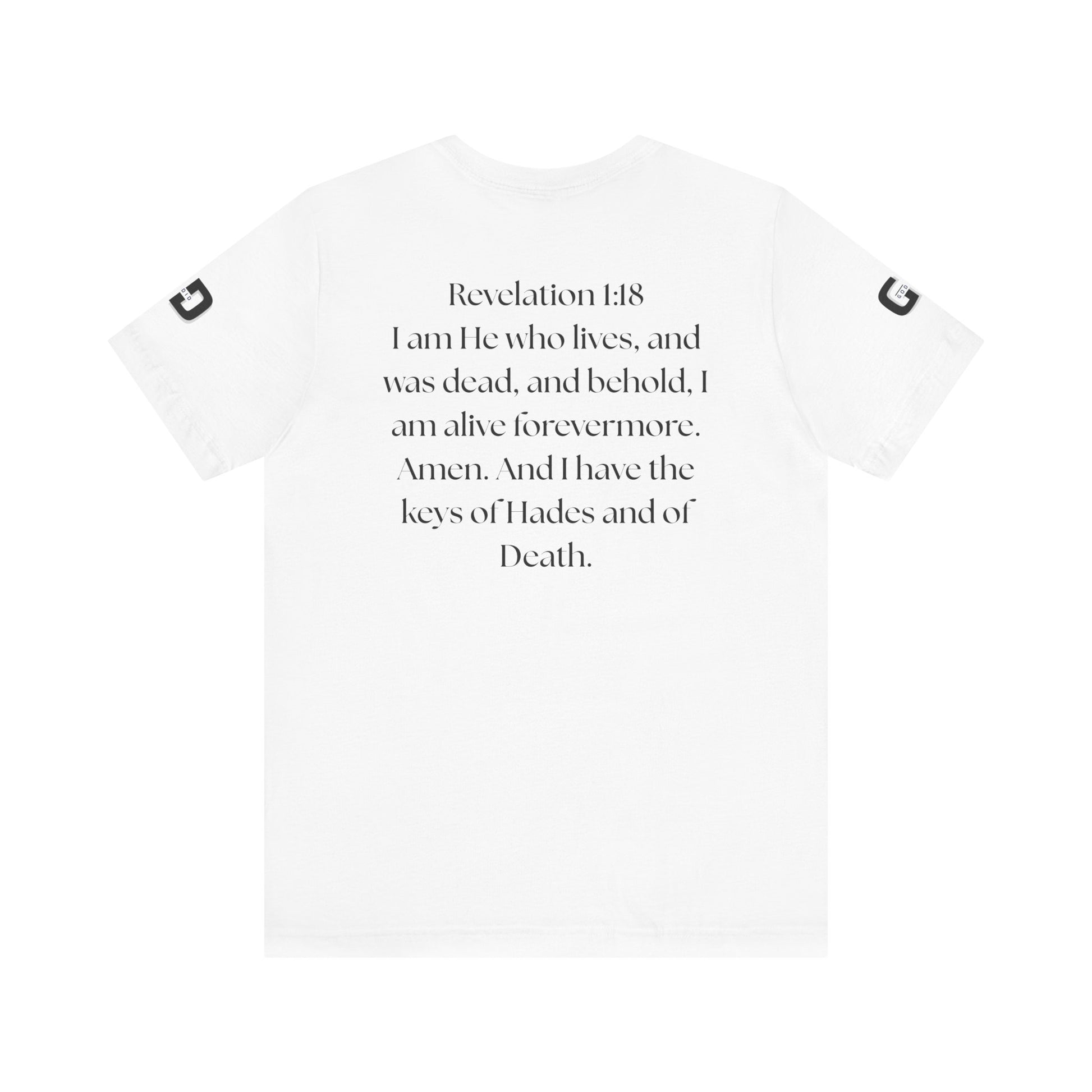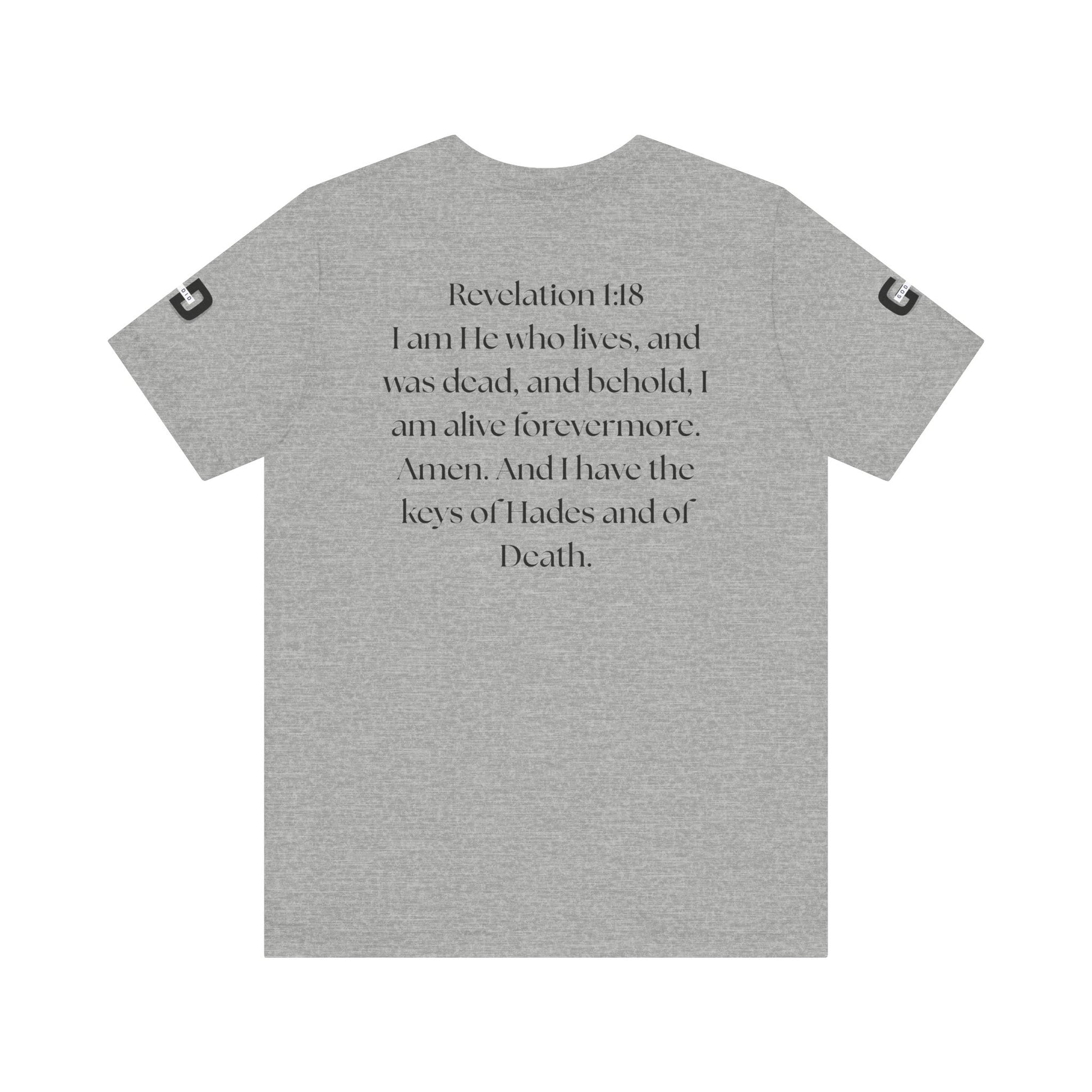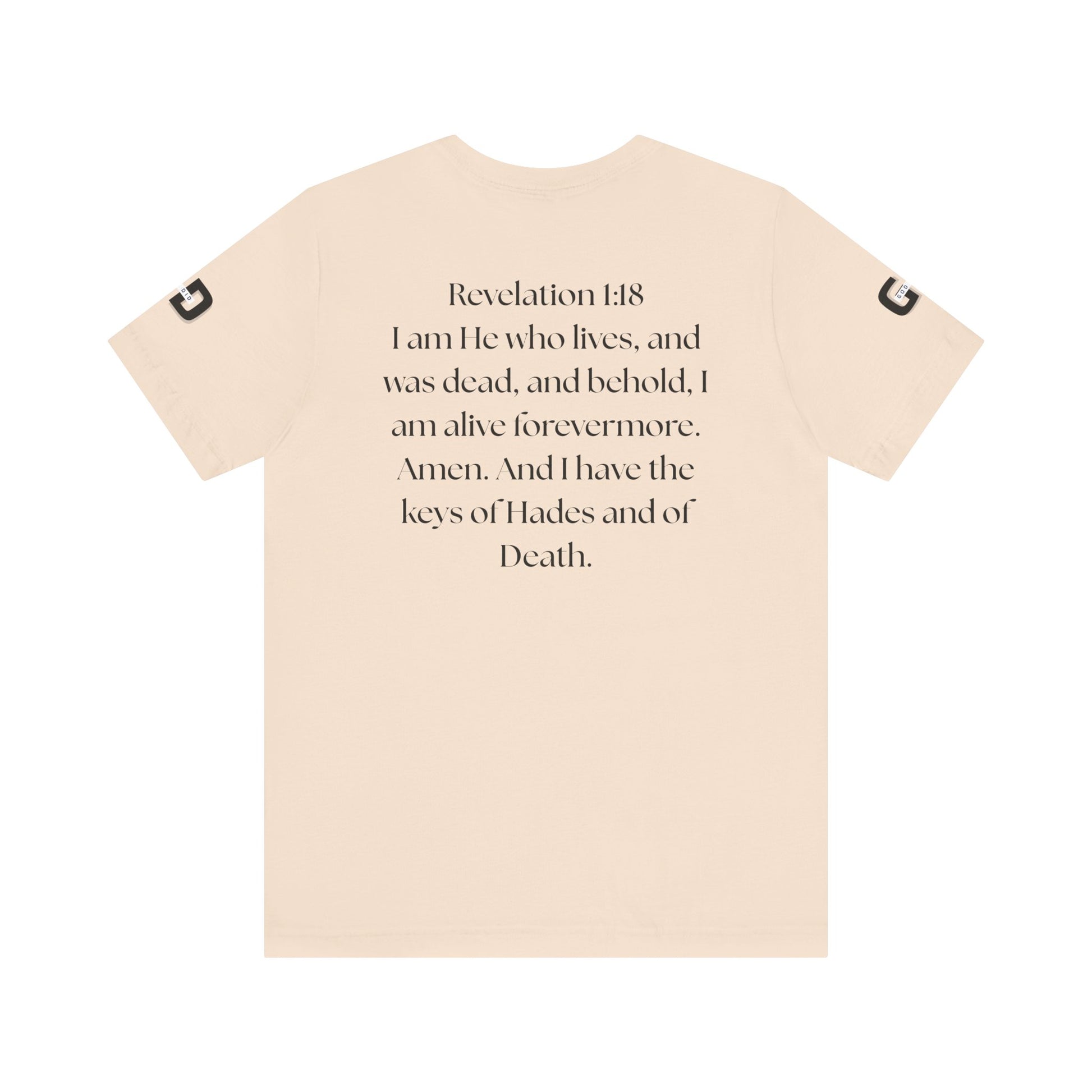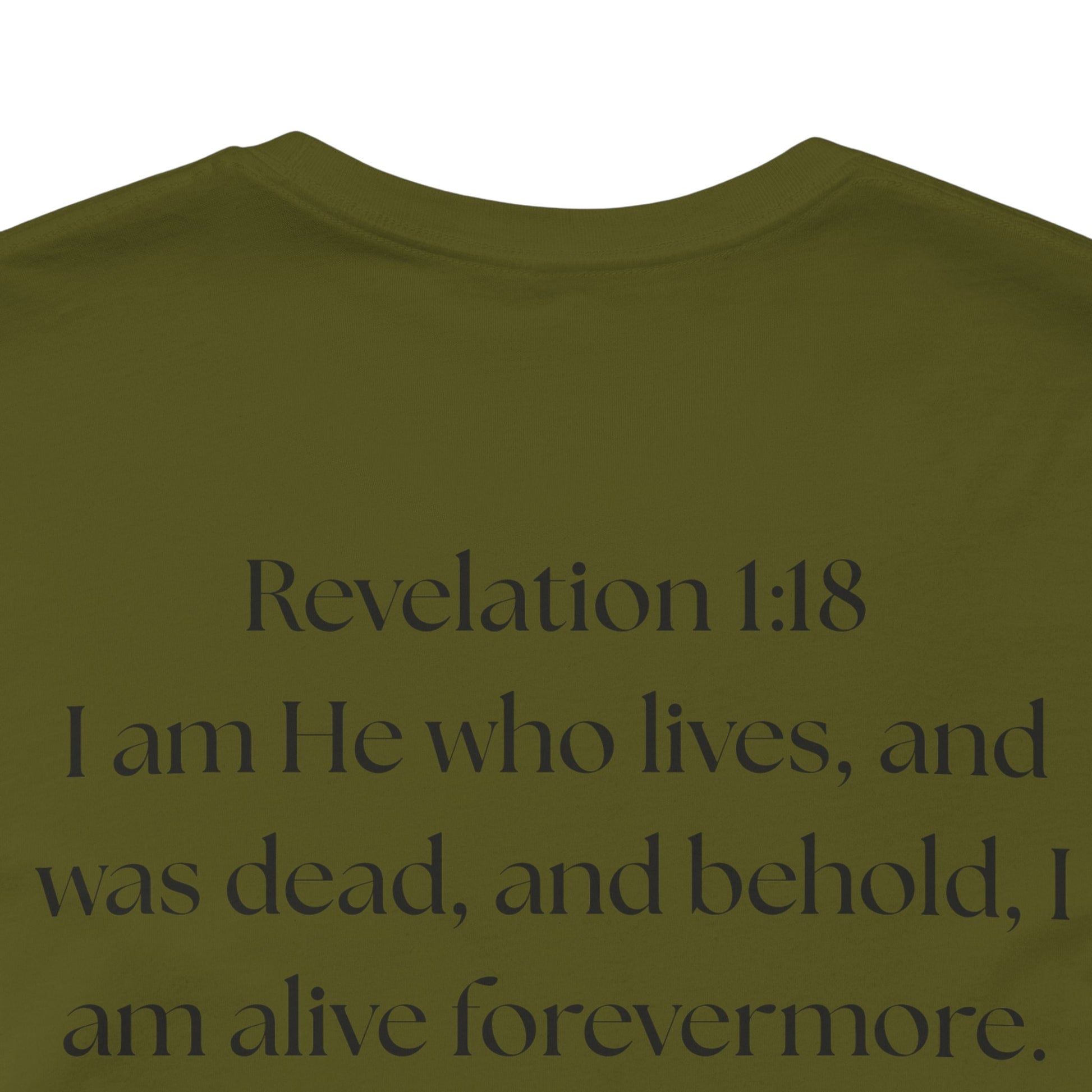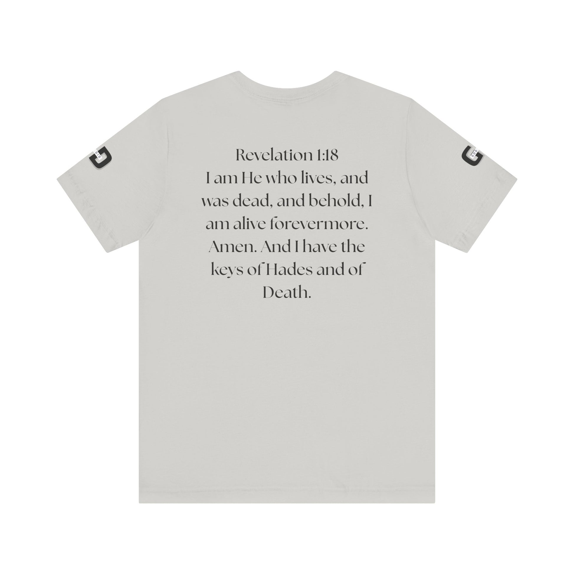 This lightweight cotton tee carries a calm, confident faith — quiet artwork of Christ across the chest, balanced by gentle typographic scripture on the back. It wears like a simple staple but speaks softly: a drawn portrait framed by spaced lettering on the front and Revelation 1:18 set in an airy serif across the back. Clean lines and breathable fabric make it easy to layer under a jacket or let stand alone during warm-weather mornings at church, volunteer days, or long drives with worship playing or wherever the Lord leads. The crew neck and retail fit keep the silhouette familiar and tasteful; the subtle sleeve marks add a modern, community-minded touch without shouting for attention. It’s for whoever wants to carry their belief with dignity and calm — not loud, just steady.