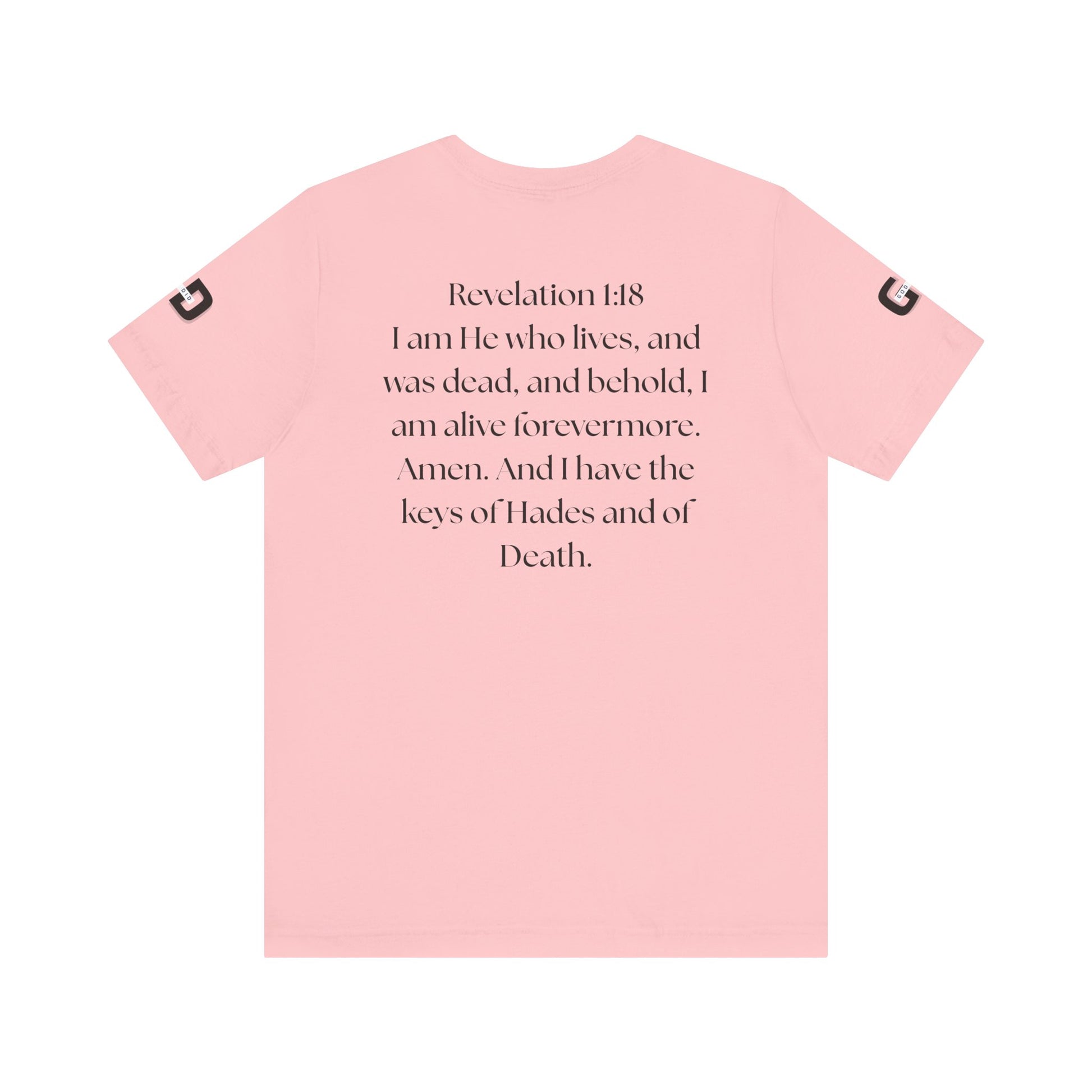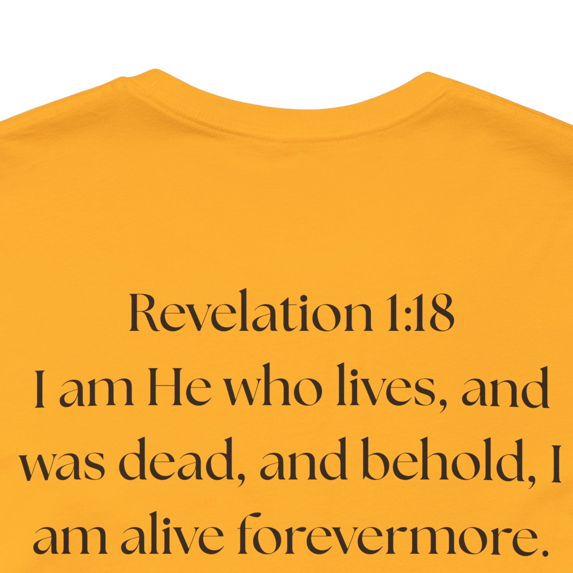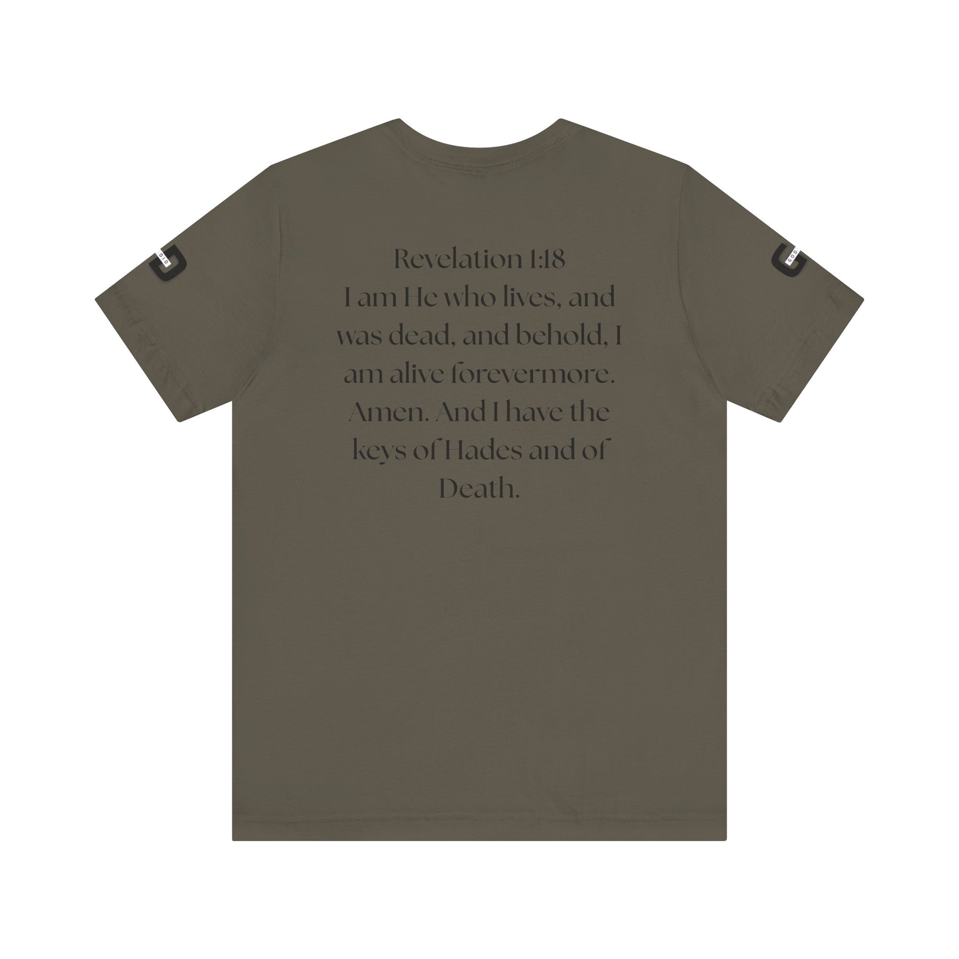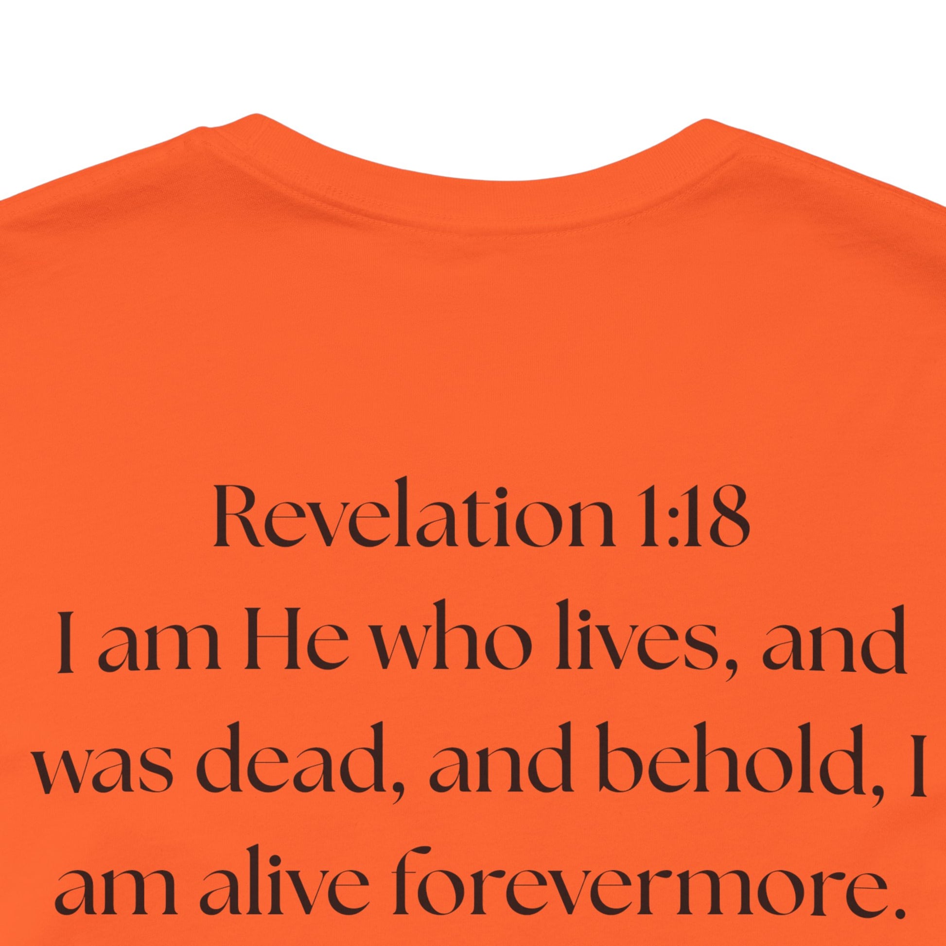 This lightweight cotton tee carries a calm, confident faith — quiet artwork of Christ across the chest, balanced by gentle typographic scripture on the back. It wears like a simple staple but speaks softly: a drawn portrait framed by spaced lettering on the front and Revelation 1:18 set in an airy serif across the back. Clean lines and breathable fabric make it easy to layer under a jacket or let stand alone during warm-weather mornings at church, volunteer days, or long drives with worship playing or wherever the Lord leads. The crew neck and retail fit keep the silhouette familiar and tasteful; the subtle sleeve marks add a modern, community-minded touch without shouting for attention. It’s for whoever wants to carry their belief with dignity and calm — not loud, just steady.