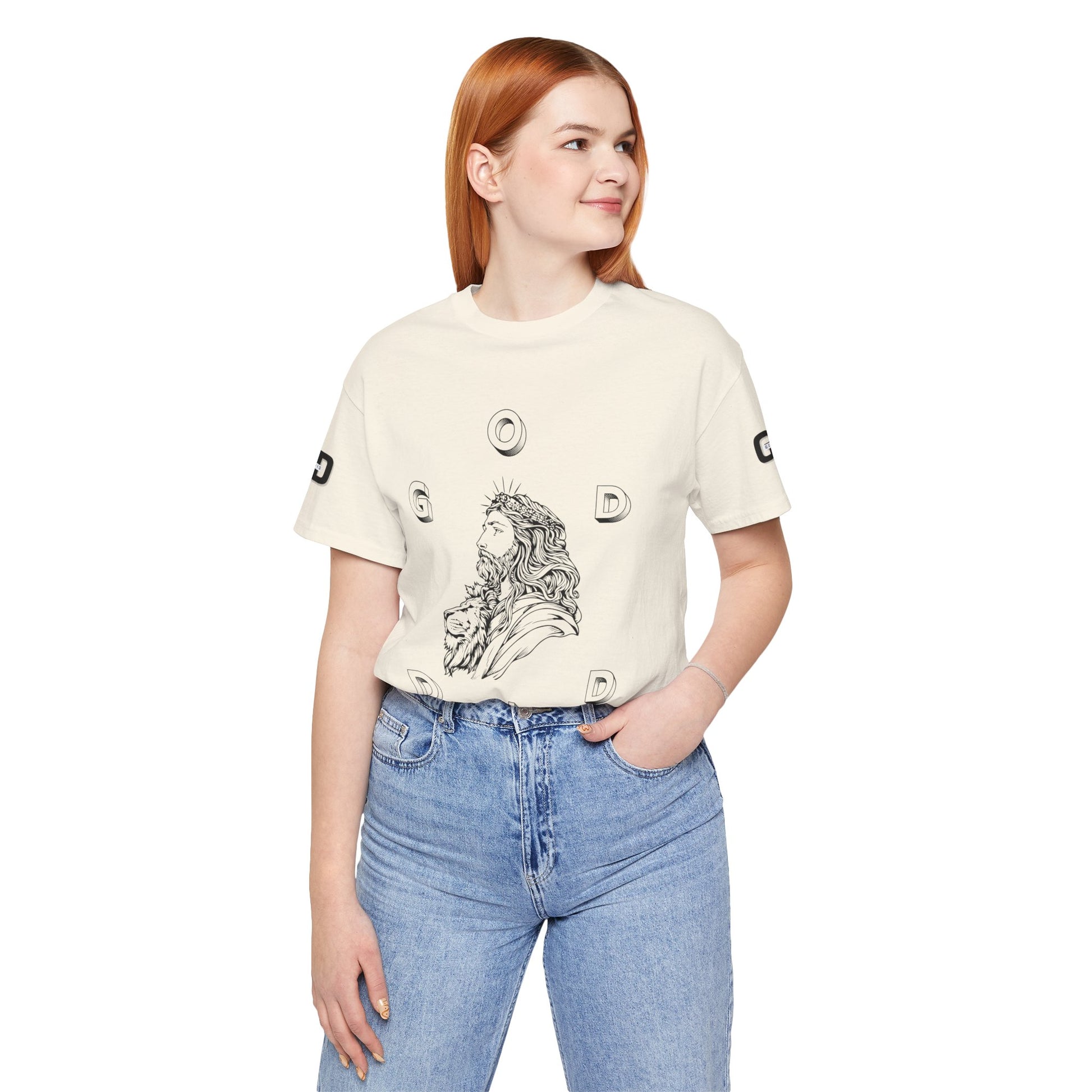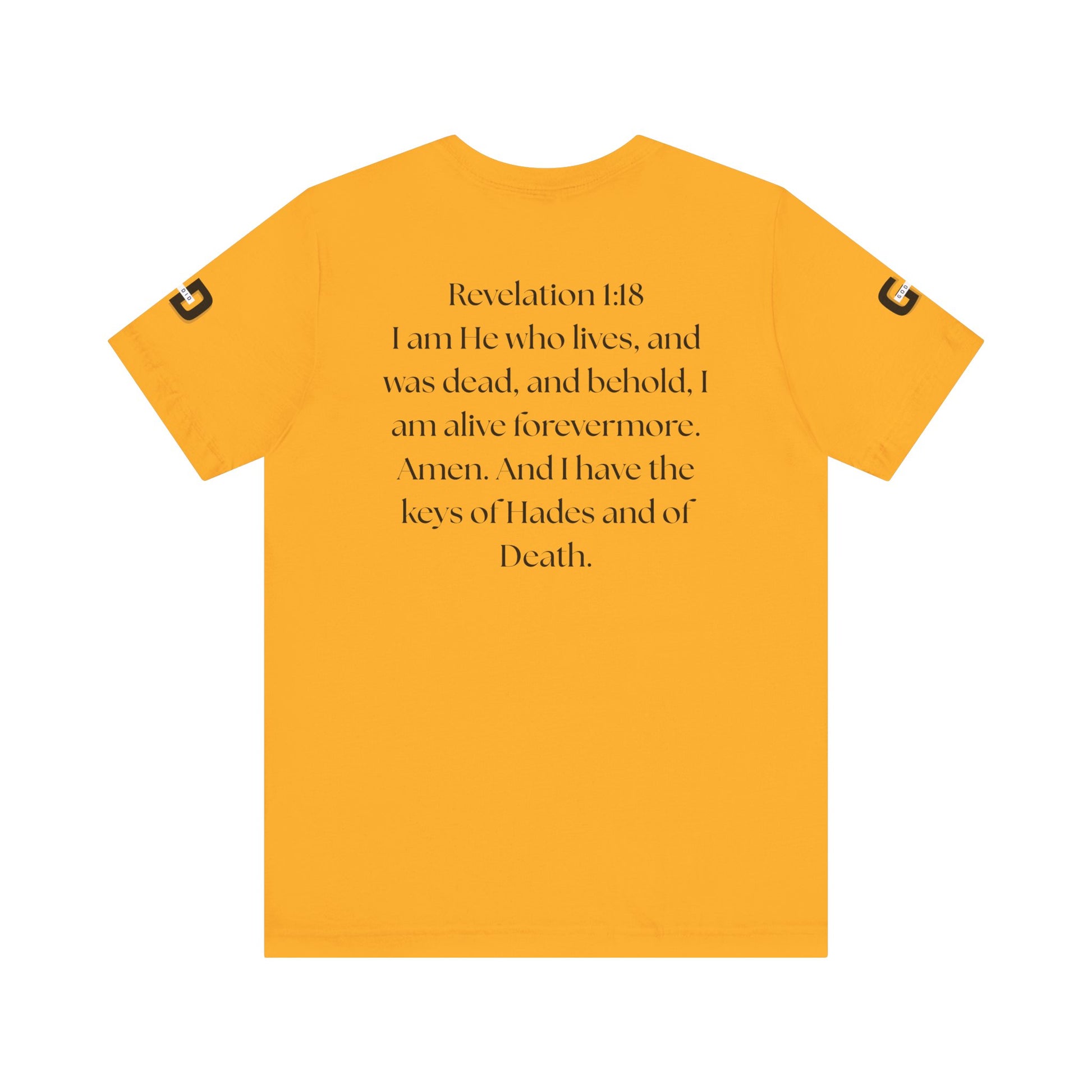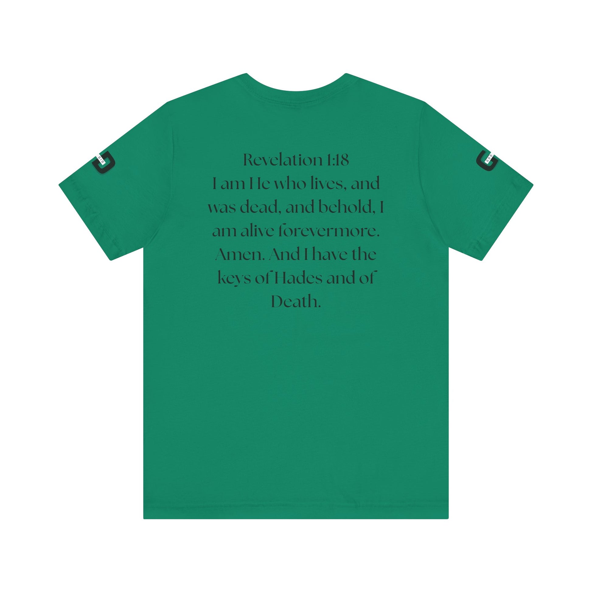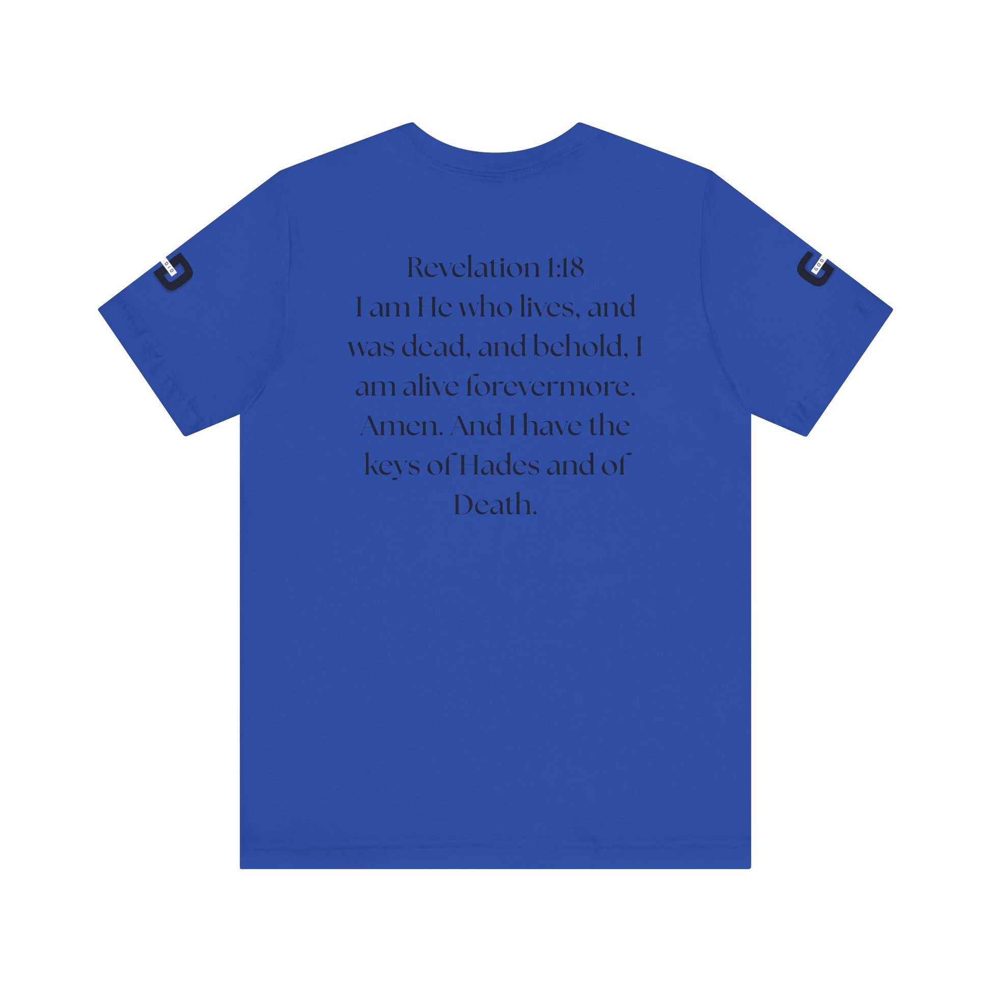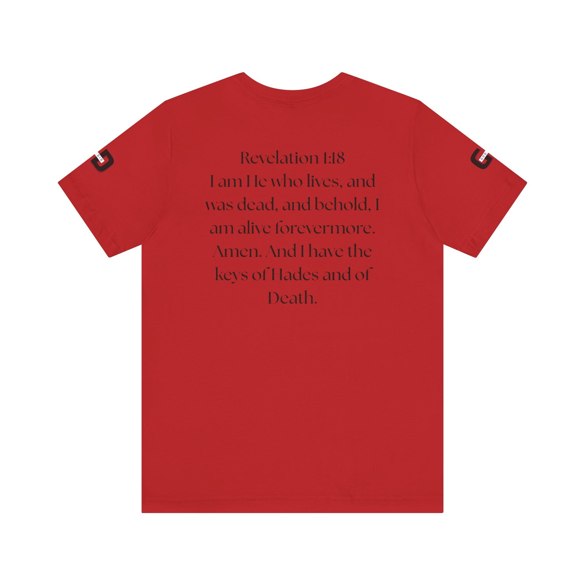 This lightweight cotton tee carries a calm, confident faith — quiet artwork of Christ across the chest, balanced by gentle typographic scripture on the back. It wears like a simple staple but speaks softly: a drawn portrait framed by spaced lettering on the front and Revelation 1:18 set in an airy serif across the back. Clean lines and breathable fabric make it easy to layer under a jacket or let stand alone during warm-weather mornings at church, volunteer days, or long drives with worship playing or wherever the Lord leads. The crew neck and retail fit keep the silhouette familiar and tasteful; the subtle sleeve marks add a modern, community-minded touch without shouting for attention. It’s for whoever wants to carry their belief with dignity and calm — not loud, just steady.