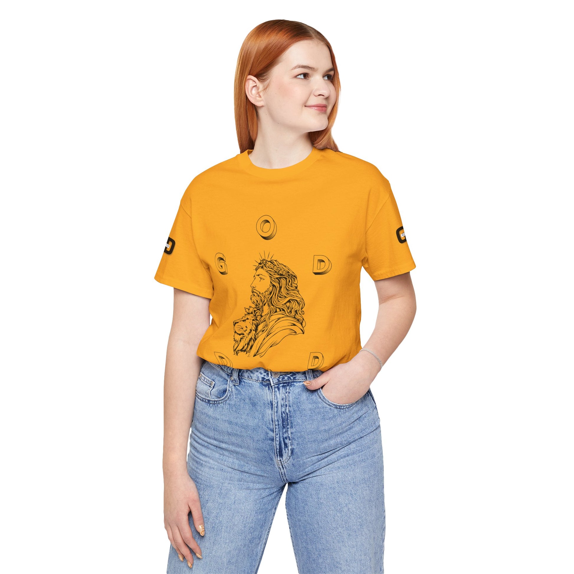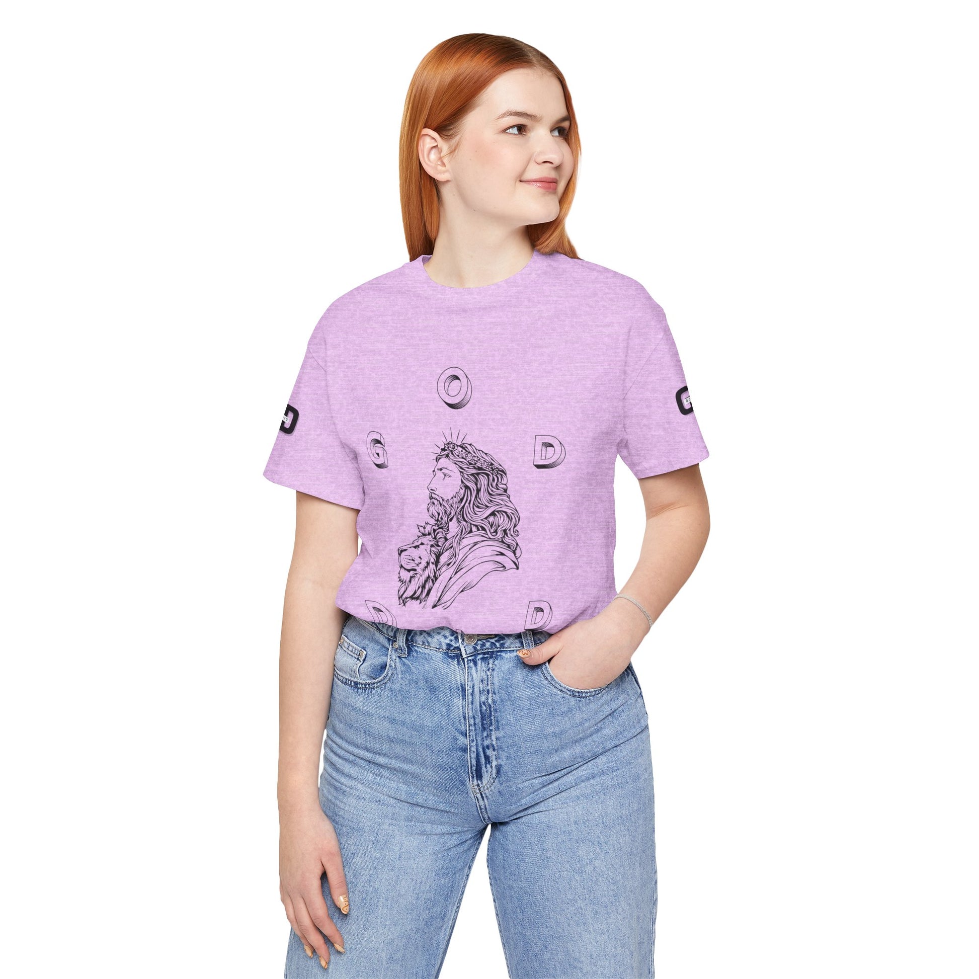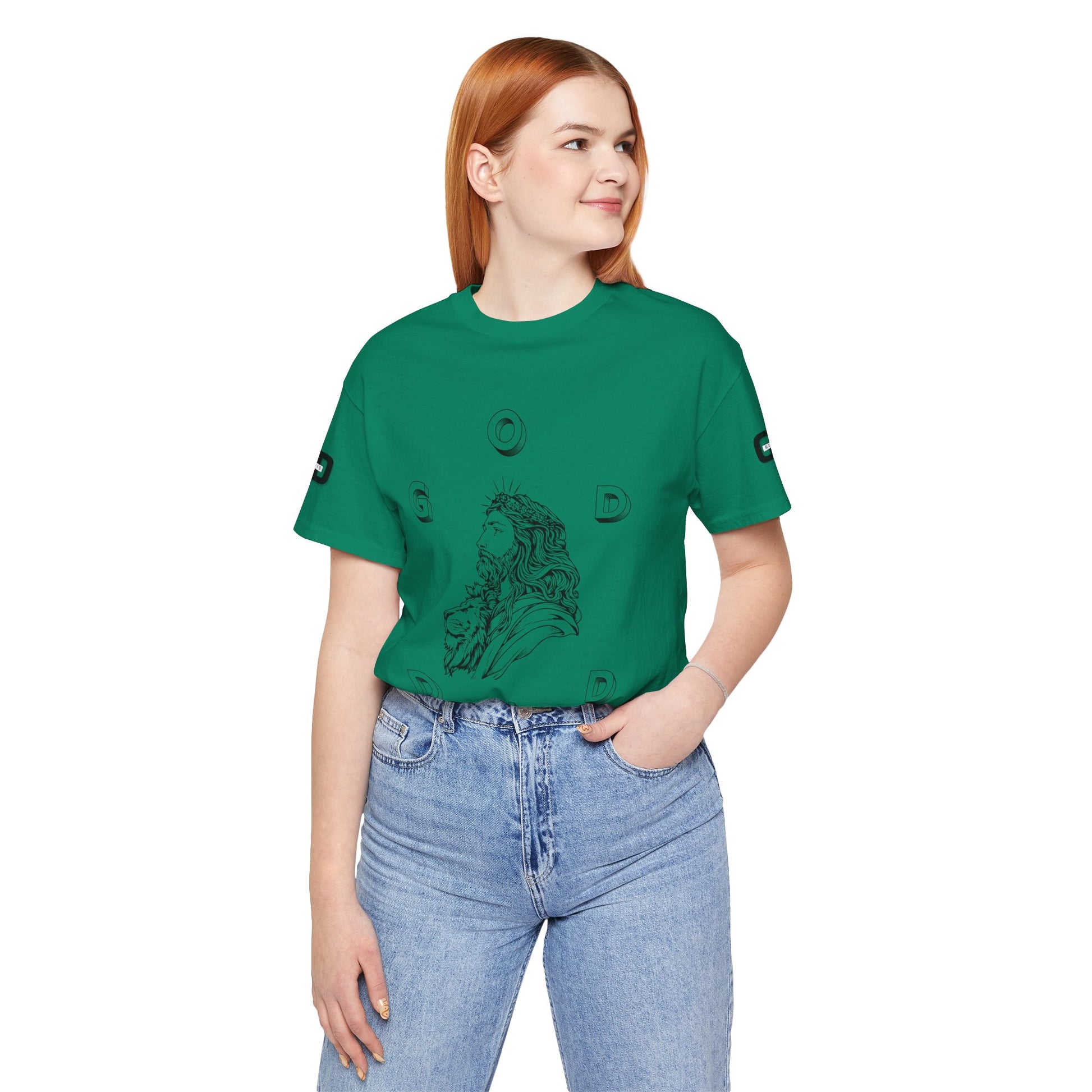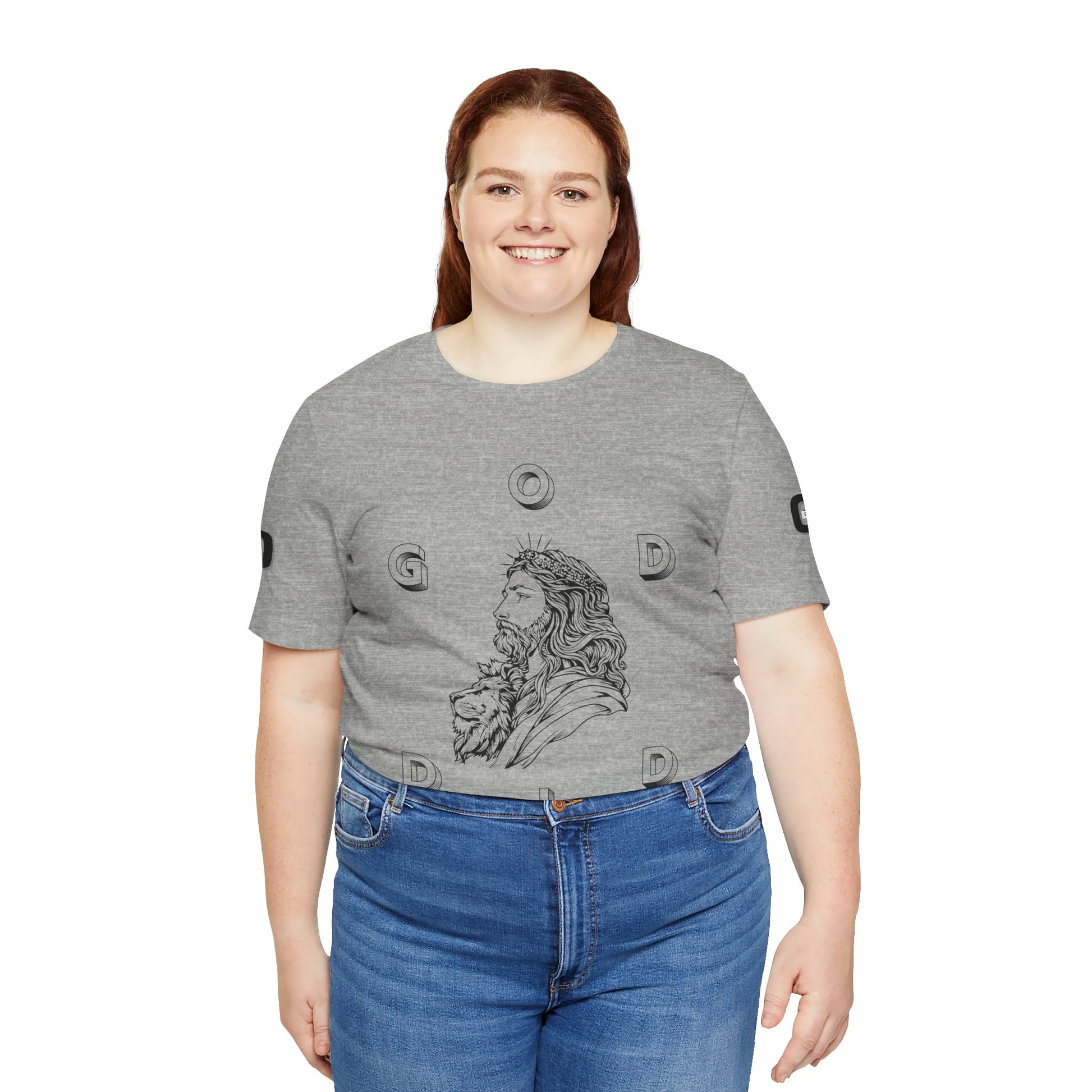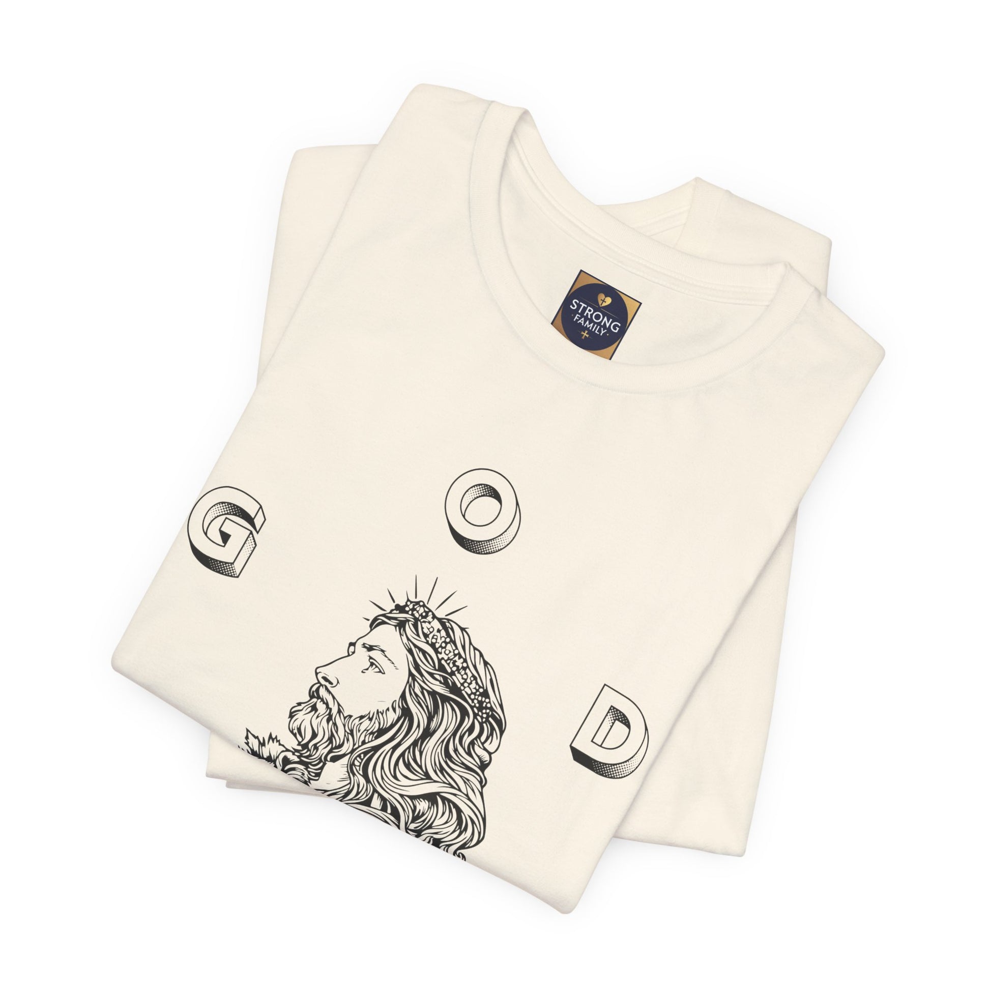 This lightweight cotton tee carries a calm, confident faith — quiet artwork of Christ across the chest, balanced by gentle typographic scripture on the back. It wears like a simple staple but speaks softly: a drawn portrait framed by spaced lettering on the front and Revelation 1:18 set in an airy serif across the back. Clean lines and breathable fabric make it easy to layer under a jacket or let stand alone during warm-weather mornings at church, volunteer days, or long drives with worship playing or wherever the Lord leads. The crew neck and retail fit keep the silhouette familiar and tasteful; the subtle sleeve marks add a modern, community-minded touch without shouting for attention. It’s for whoever wants to carry their belief with dignity and calm — not loud, just steady.