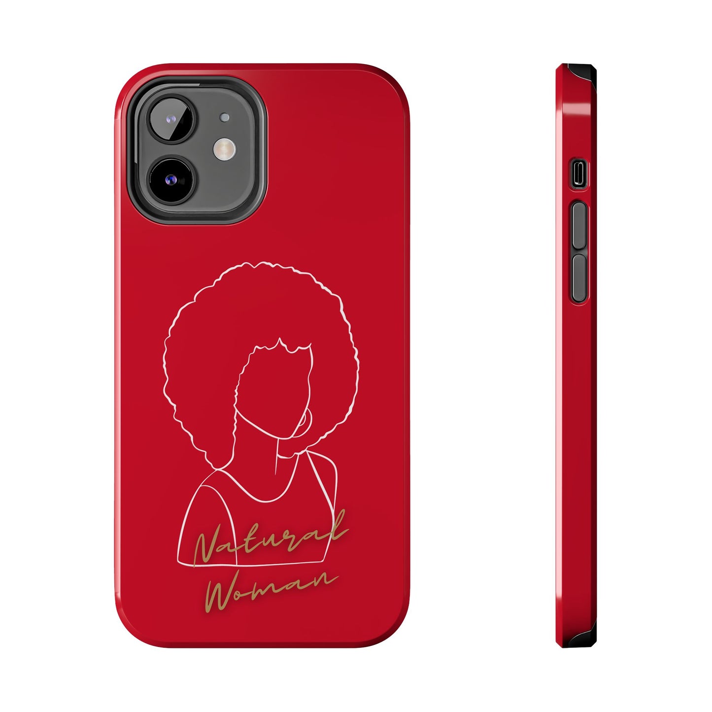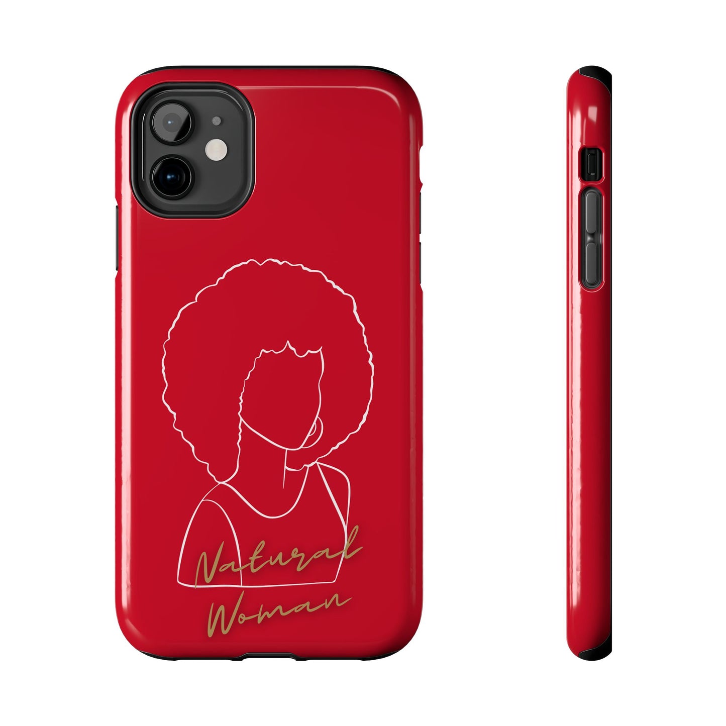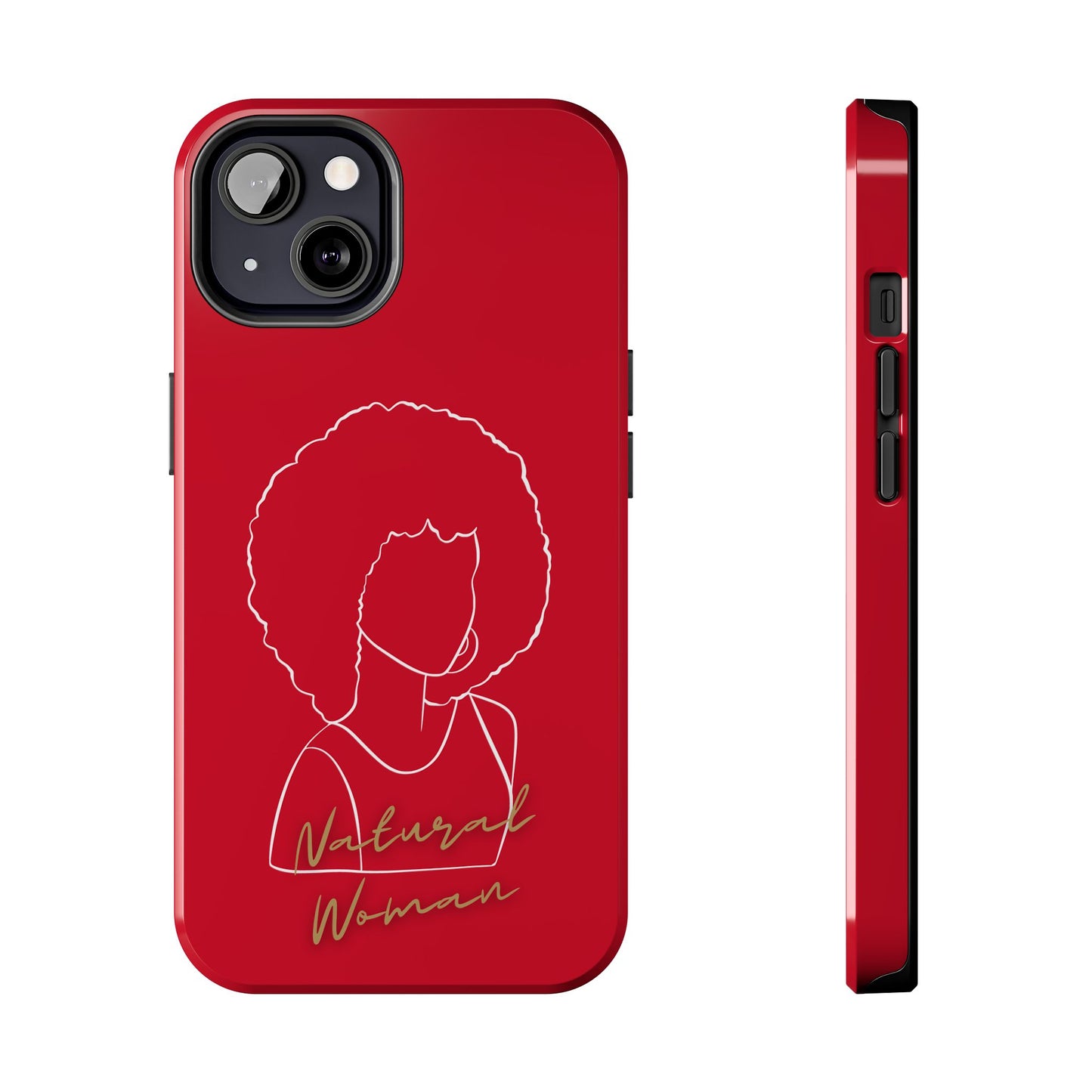 Protect your phone in style with the Natural Woman Afro (WL)Tough Phone Cases DARK RED from Strong Family. This lightweight and durable case features a polycarbonate shell and TPU lining for impact resistance, along with an interior rubber liner for extra protection. The glossy finish adds a sleek touch, while the case supports wireless charging (excluding MagSafe). Crafted with care in the USA, this phone case ensures your device stays safe and secure.