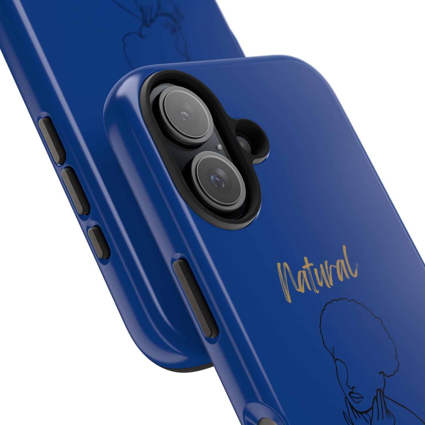 Protect your phone in style with the Natural Woman Cute Afro (BL) Tough Phone Cases DARK BLUE from Strong Family. This lightweight and durable case features a polycarbonate shell and TPU lining for impact resistance, along with an interior rubber liner for extra protection. The glossy finish adds a sleek touch, while the case supports wireless charging (excluding MagSafe). Crafted with care in the USA, this phone case ensures your device stays safe and secure.