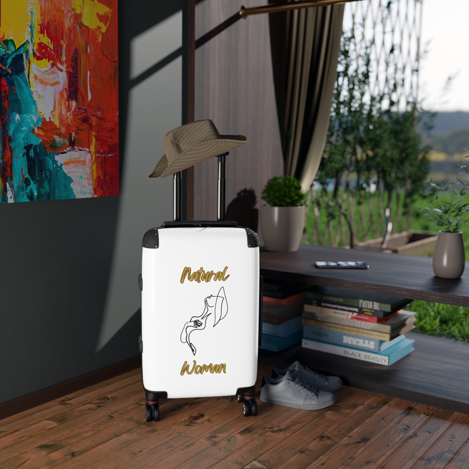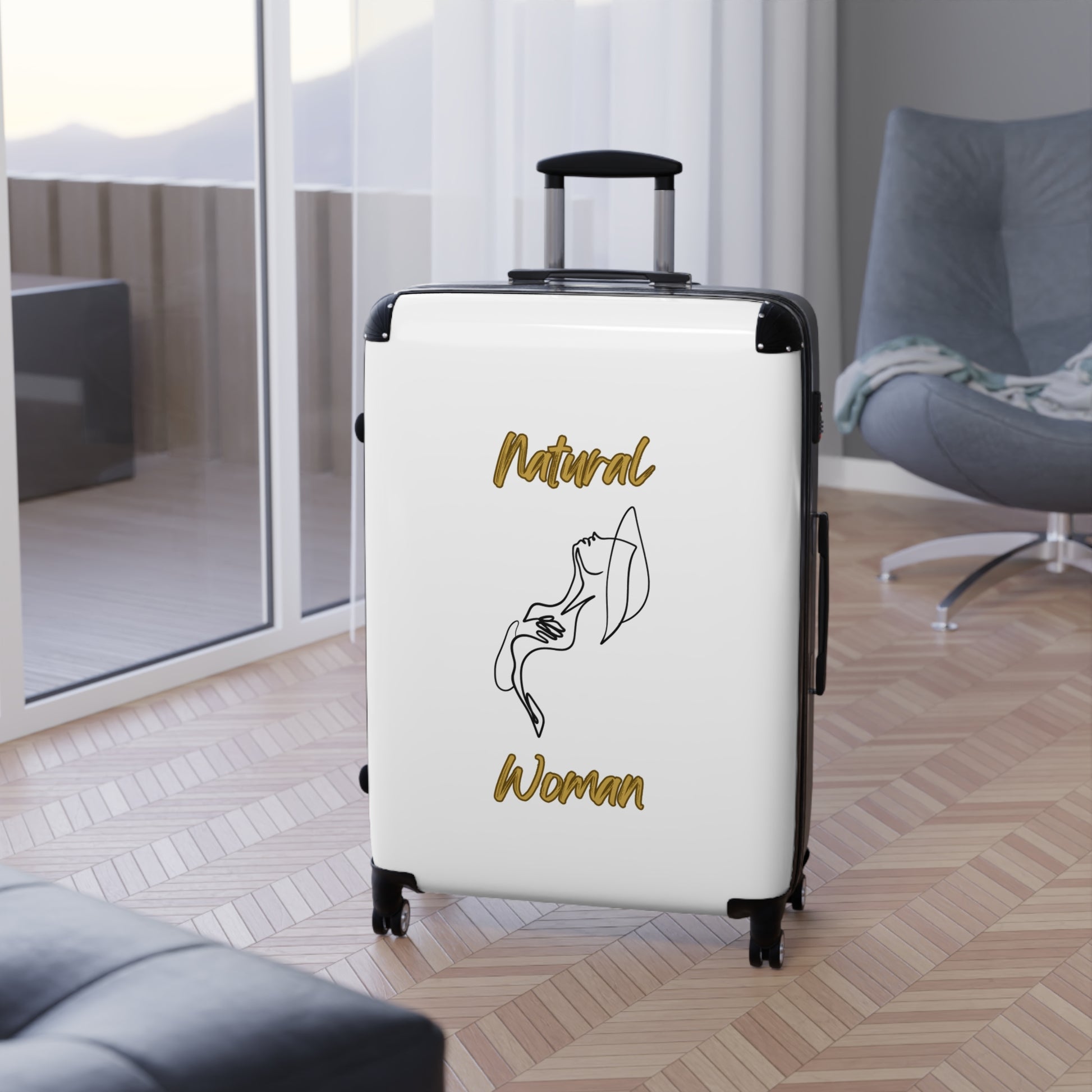 Travel in style with Natural Woman suitcases, available in multiple sizes for all your travel needs. Featuring high-resolution printed designs on a durable polycarbonate and ABS hard-shell, these suitcases are perfect for those looking to add a touch of personality to their travels. Ideal for fashion-forward travelers and those who enjoy expressing themselves through their accessories. Perfect for vacations, business trips, and any travel enthusiast.