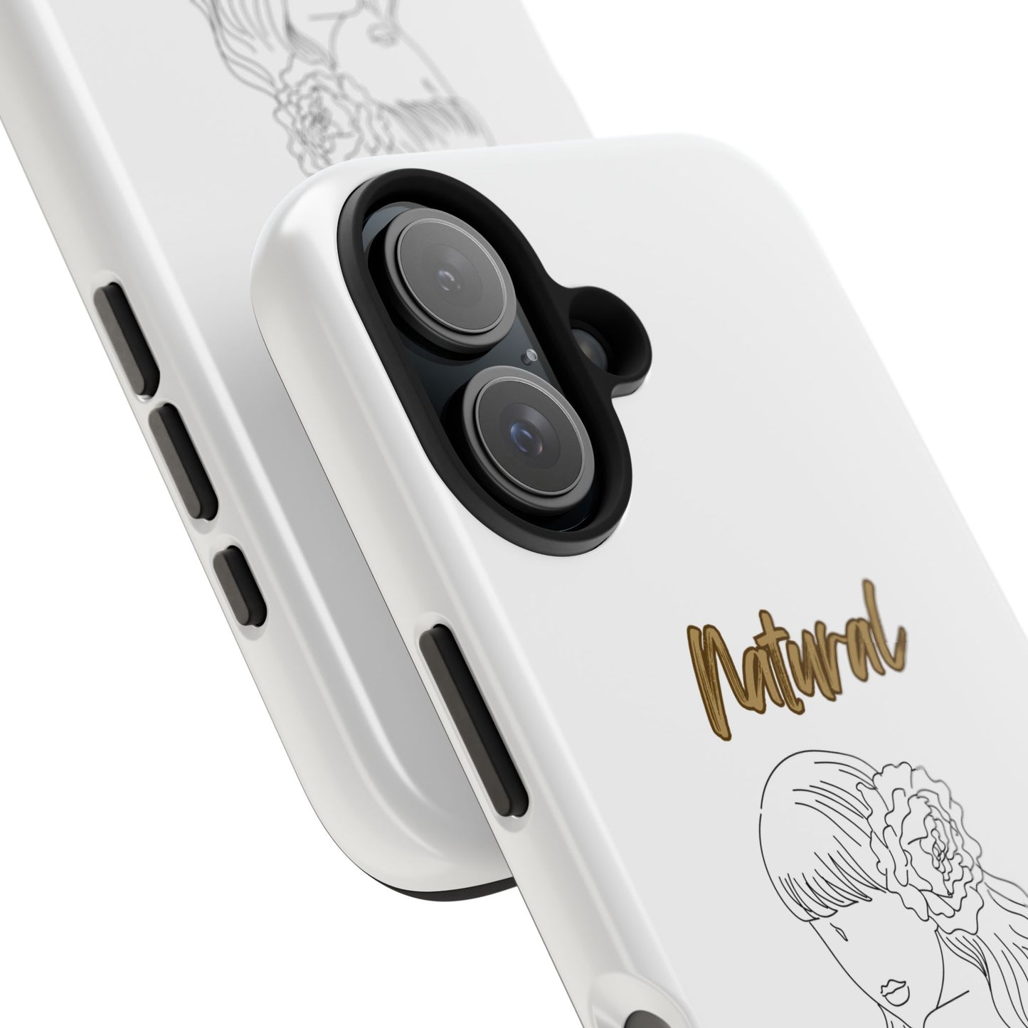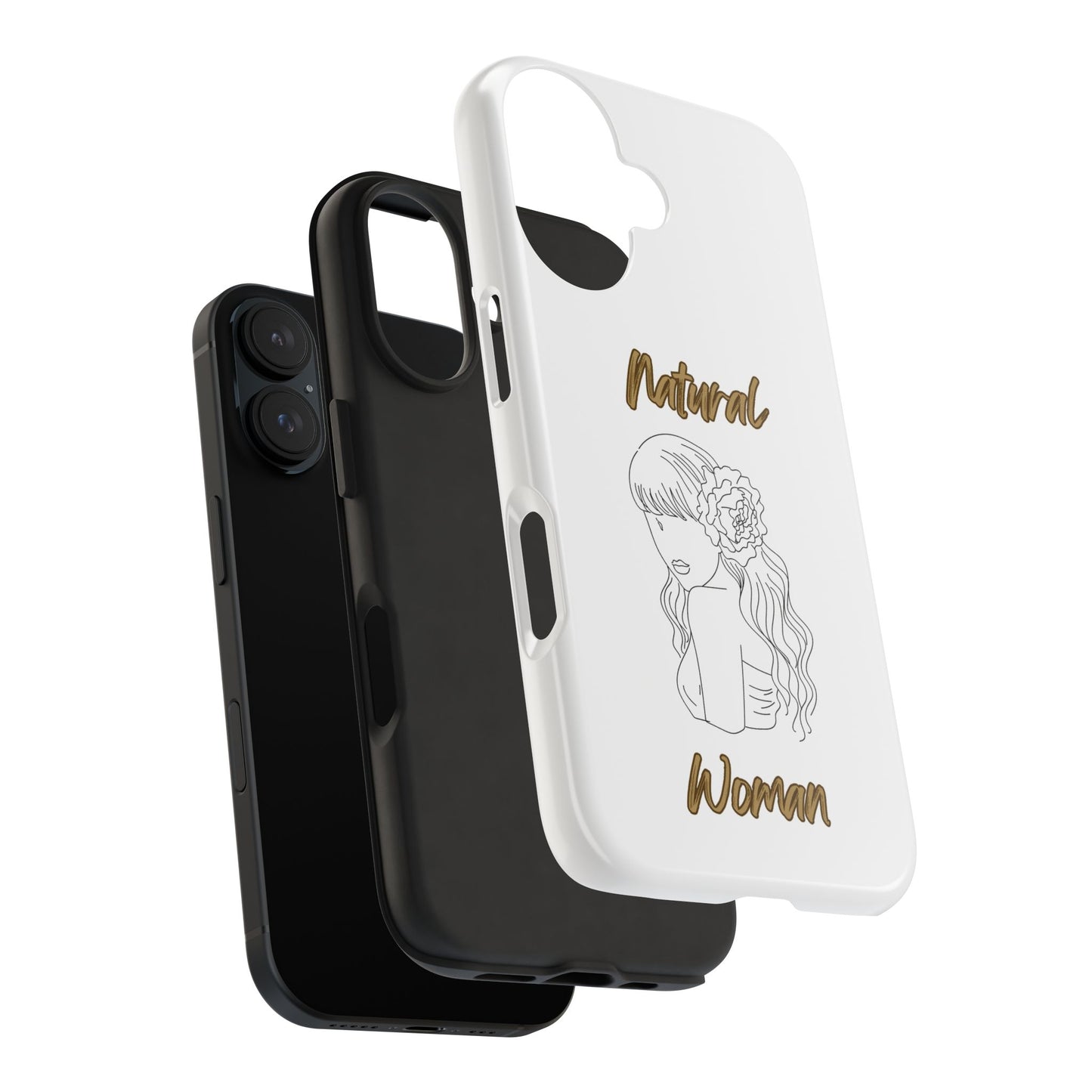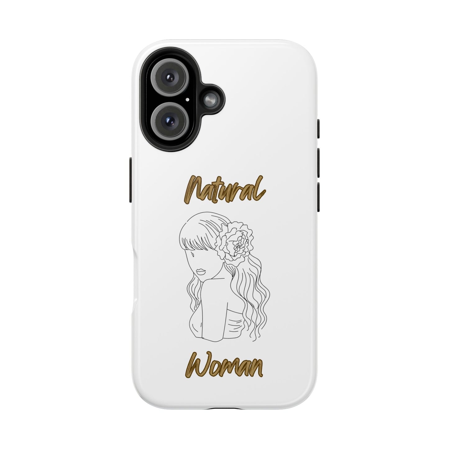 Protect your phone in style with the Natural Woman Newness (BL) Tough Phone Cases WHITE from Strong Family. This lightweight and durable case features a polycarbonate shell and TPU lining for impact resistance, along with an interior rubber liner for extra protection. The glossy finish adds a sleek touch, while the case supports wireless charging (excluding MagSafe). Crafted with care in the USA, this phone case ensures your device stays safe and secure.