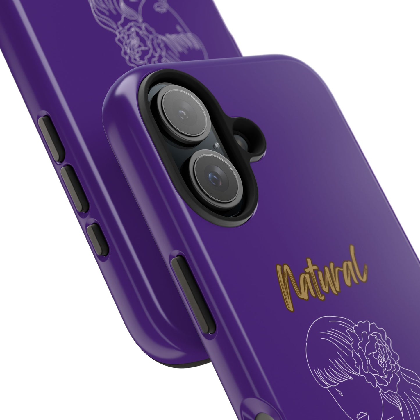 Protect your phone in style with the Natural Woman Newness (WL) Tough Phone Cases PURPLE from Strong Family. This lightweight and durable case features a polycarbonate shell and TPU lining for impact resistance, along with an interior rubber liner for extra protection. The glossy finish adds a sleek touch, while the case supports wireless charging (excluding MagSafe). Crafted with care in the USA, this phone case ensures your device stays safe and secure.