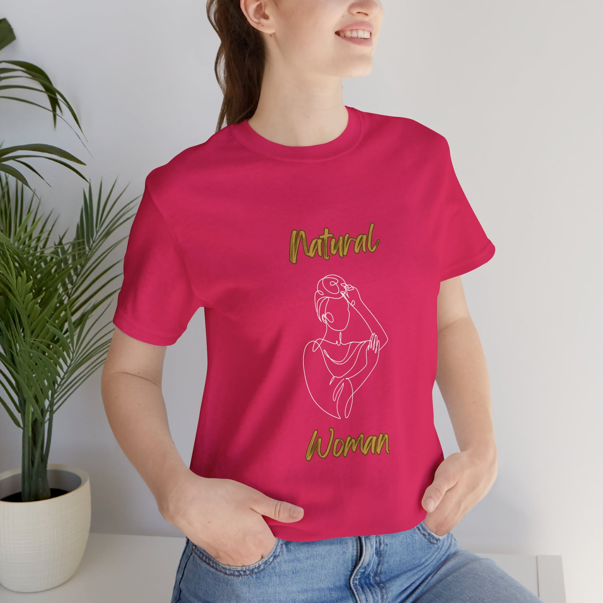 Elevate your casual style with the Natural Woman Short Sleeve T-Shirt brought to you by Strong Family. Crafted with soft, breathable 100% Air lume combed and ring-spun cotton, this classic unisex tee features a ribbed knit collar for a comfortable fit and dual side seams to maintain its shape. The tapered shoulders and tear-away label provide a flattering, irritation-free wear. Available in a range of sizes from S to 3XL and in versatile colors like Red, this t-shirt is perfect for everyday wear, whether you're relaxing or on the go.