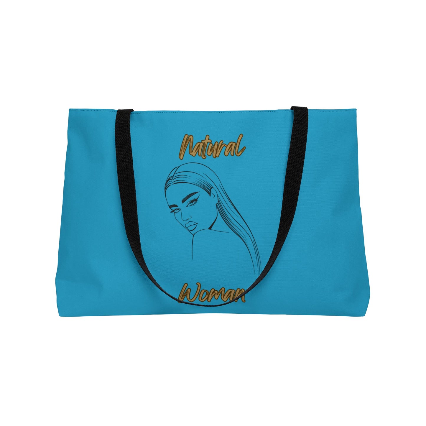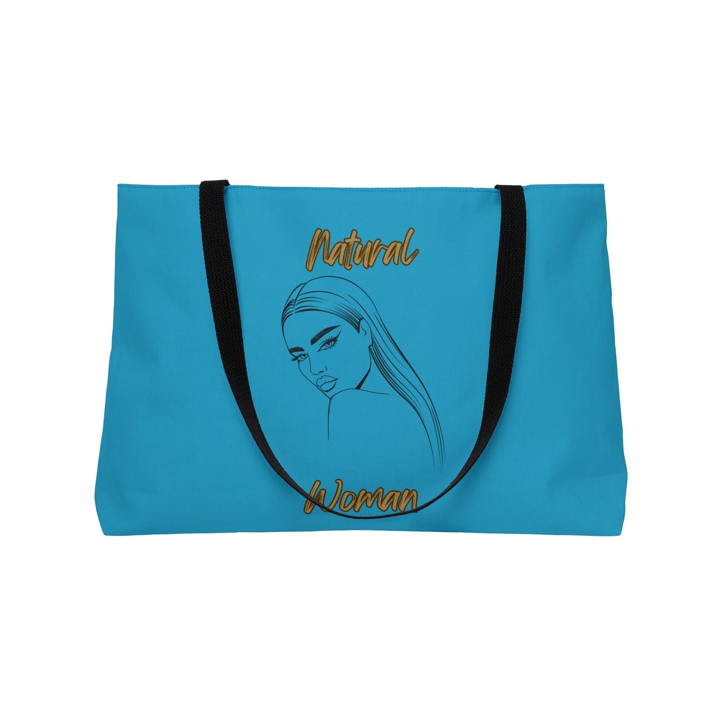 Elevate your travel style with the Natural Woman The Stare (BL) Weekender Tote Bag in a TURQUOISE. Crafted from durable 100% spun polyester, this spacious 24" x 13" bag offers ample room for all your essentials. Its sleek, classic design with black handles complements any outfit, making it the perfect companion for weekend getaways or daily commutes. Designed by the renowned Strong Family brand, this versatile tote bag is a must-have for the modern, on-the-go individual.